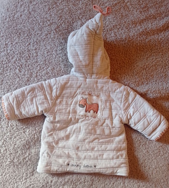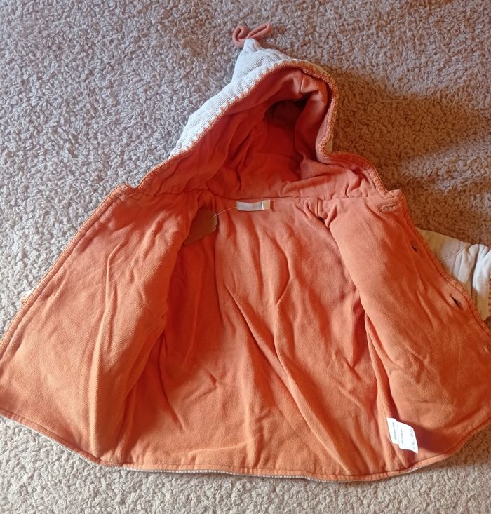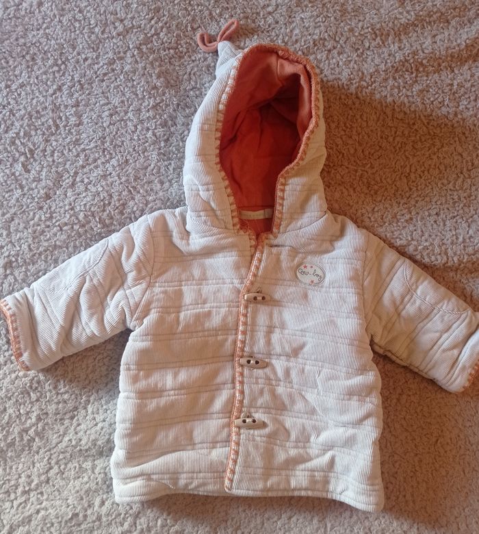 Manteau 6 mois / 67 cm Manque un bouton tout en haut, sinon très bon état 100% coton Marque : tape à l'oeil