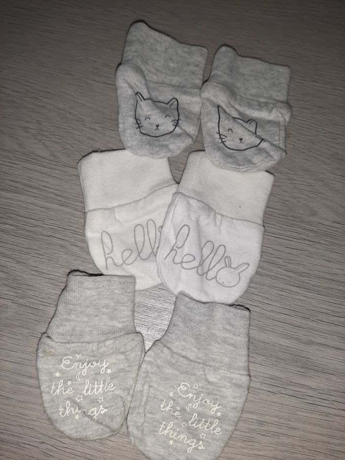Lot de deux body dont un tâcher Plus trois paires de gants