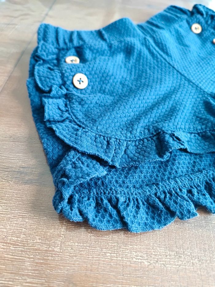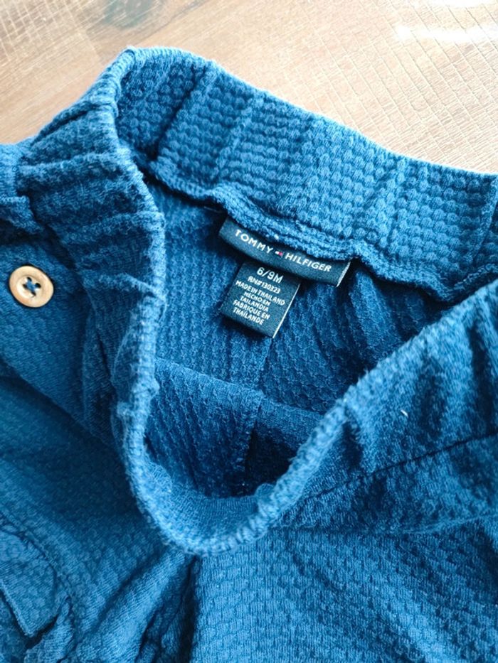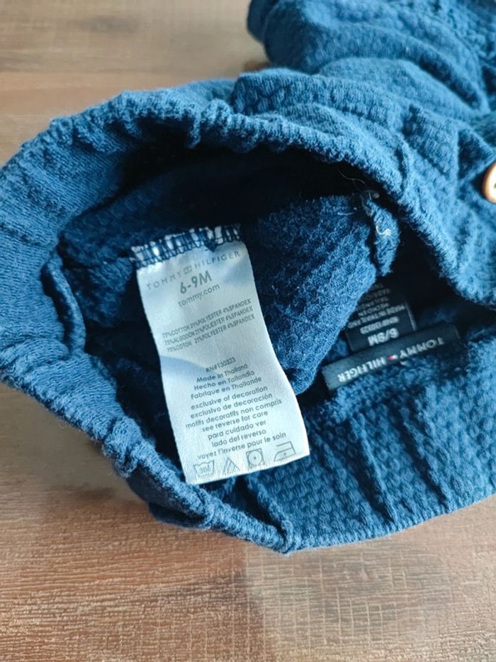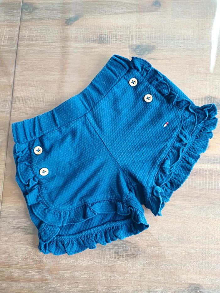 Short bleu marine Coton Finitions en volants 2 petits boutons déco a la taille Ceinture élastique Marque Tommy Hilfiger, authentique Taille 6/9mois (pouvant être porté jusqu'à 18mois, car bien élastique) Joli et agréable à porter Très bon état, quasi neuf Envoi rapide #cyboulette44fille9mois