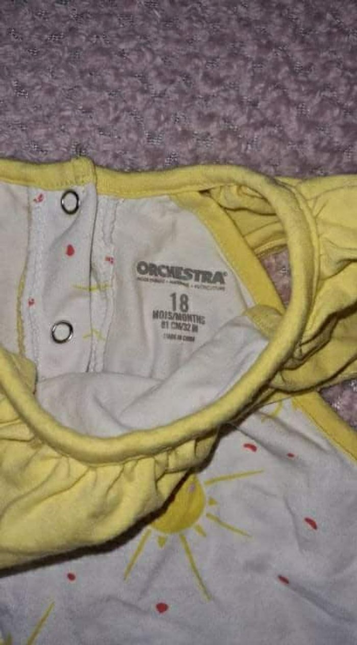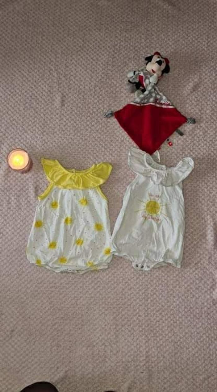 Lot de 2 barboteuses très peu portées, en très bon état, blanches et jaunes. Taille 18 mois, Orchestra