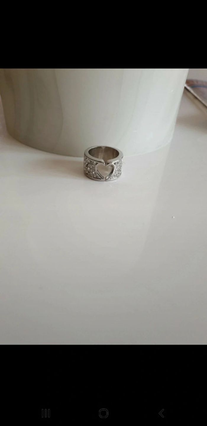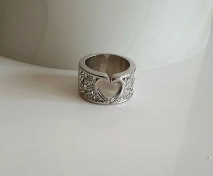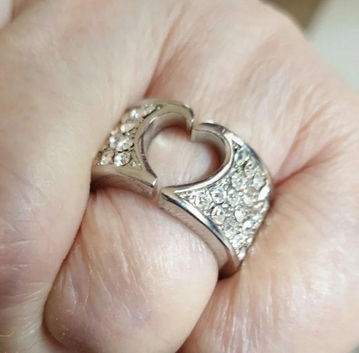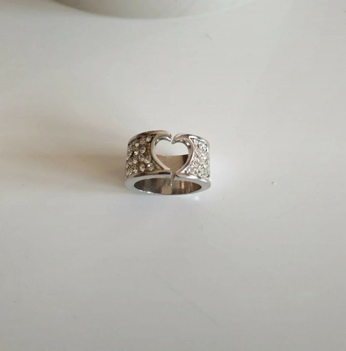 Jolie bague Cœur et strass Argenté Taille 18mm Comme neuve