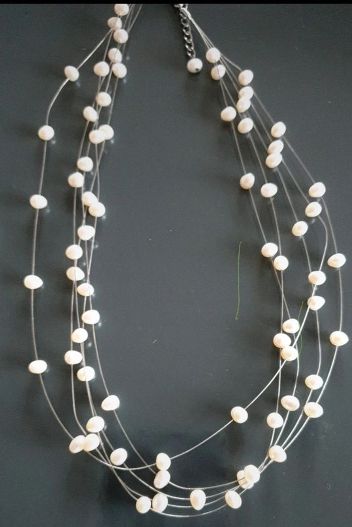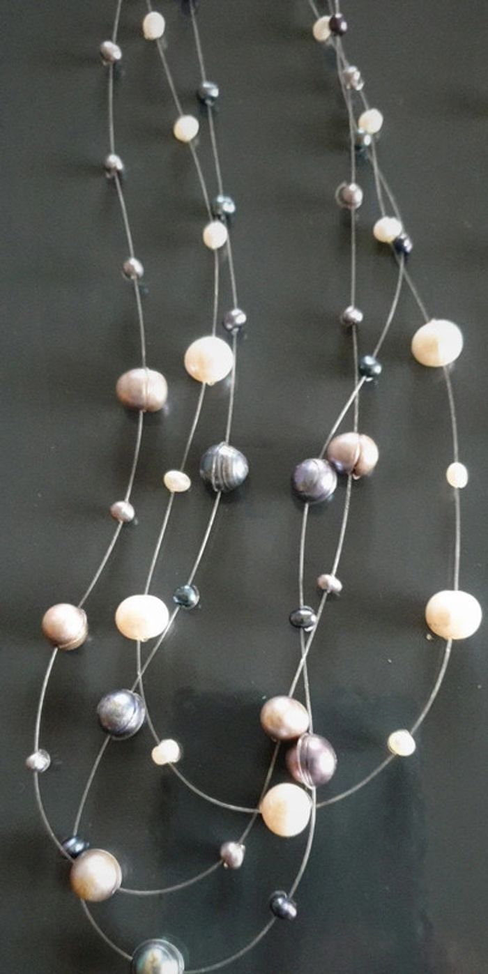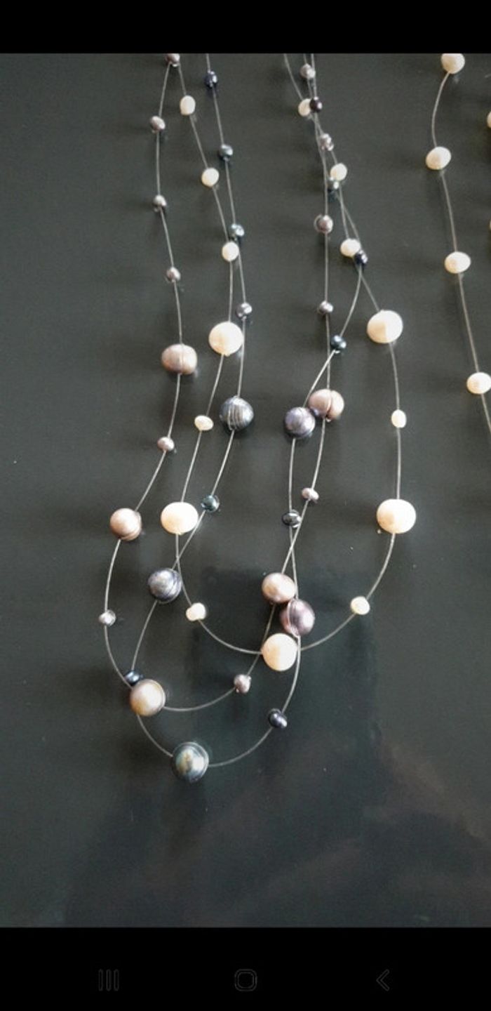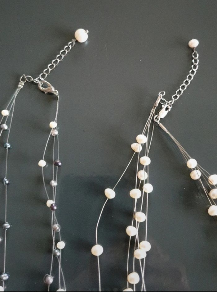 Lot de 2 Perles Blanches Grises et marrons Fermoir argenté Très peu portés