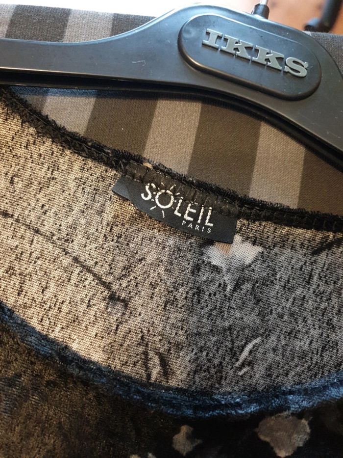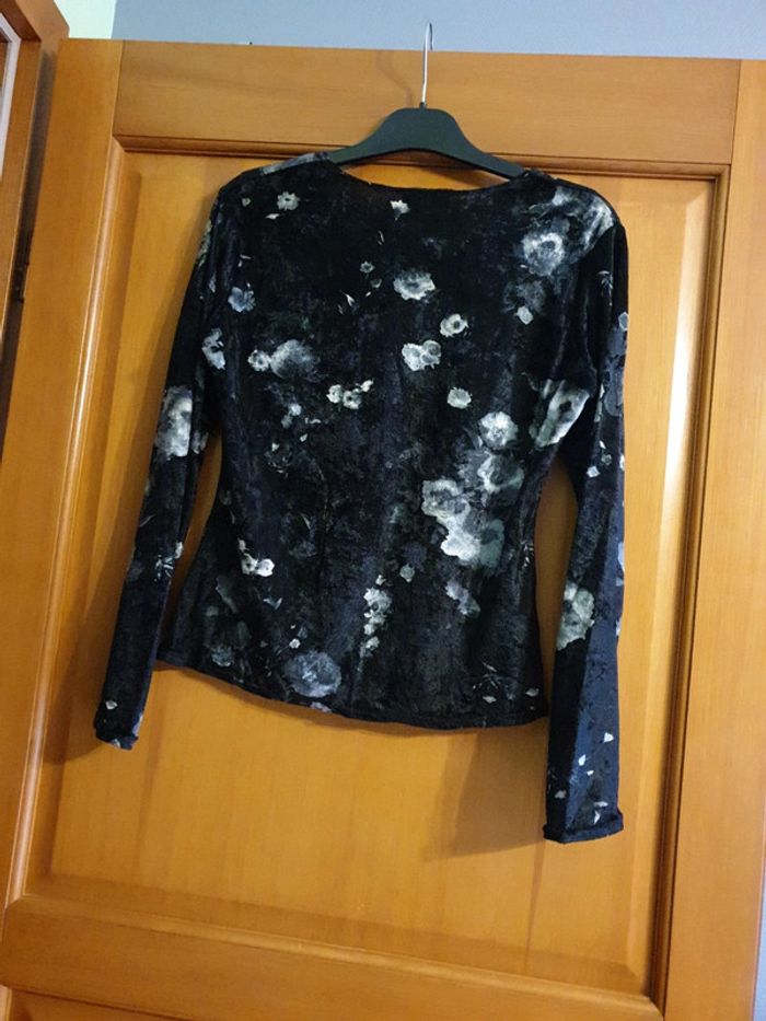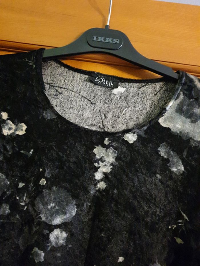 Manches longues Noir et gris Etiquette Taille coupée Aisselles @Aisselles 44 cm Longueur52cm Tissu velours léger Elasthane