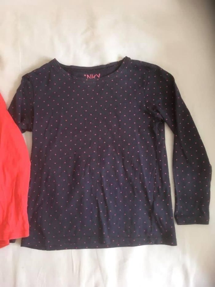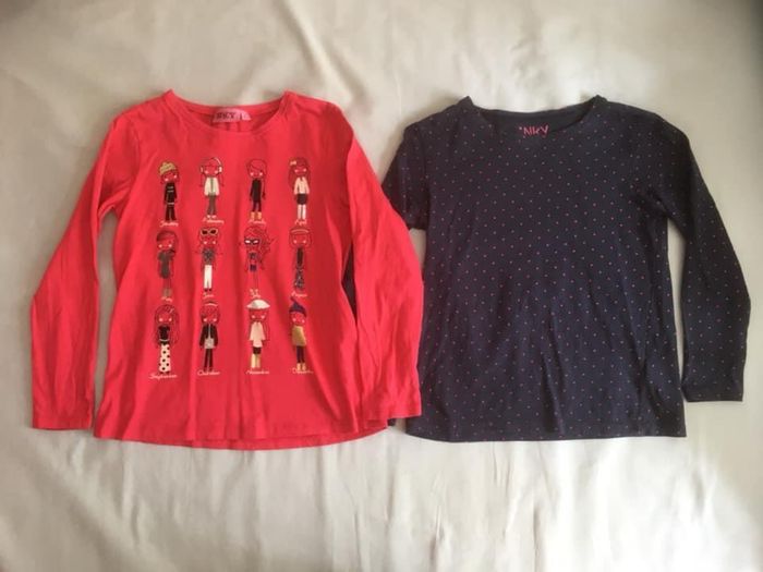 Lot de 2 hauts ML Kiabi (NKY), vendus 3€50 ~ En très bon état (achetés neufs) !! Le rouge taille 5/6 ans (116 cm) ~ Le bleu marine noté 8 ans (128 cm) mais taille aussi 5/6 ans.