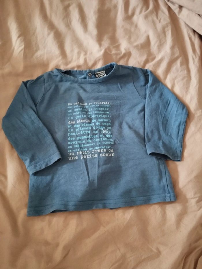 En bon état, ouverture par pression derrière, inscription "en cadeaux je voudrais: une petite voiture de course, un camion de pompier, un robot ou des dinosaures, un train électrique, des bisous de maman et des bisous de papa, un poisson rouge ou peut être un chat, des gommettes et des crayons de couleurs, un déguisement de pirate et une épée de chevalier ... Un petit frère ou une petite sœur"