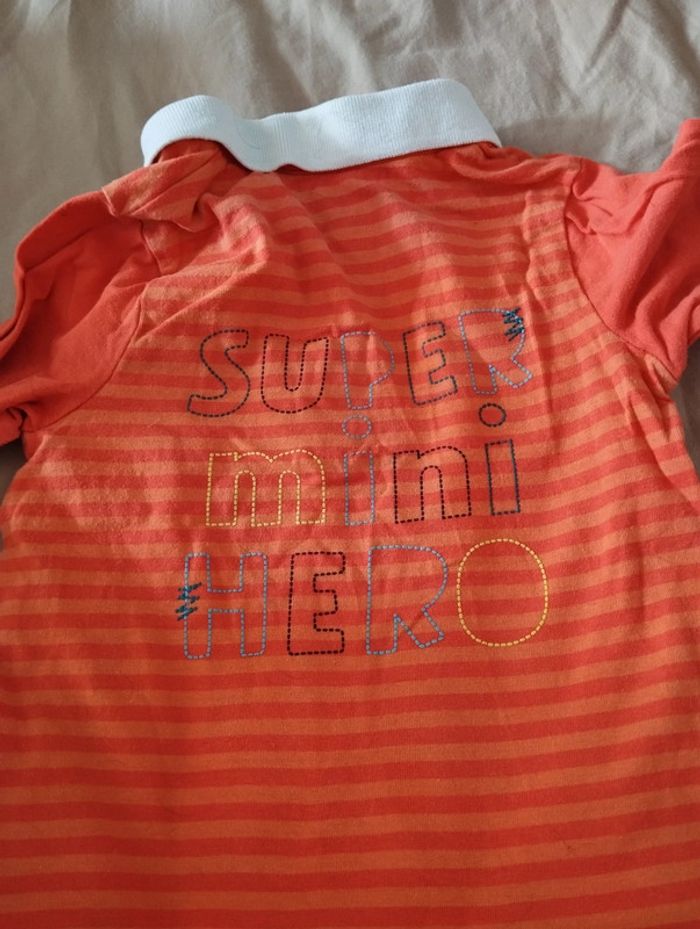 En bon état, coloris orange rayé, inscription "super mini héro" devant et derrière