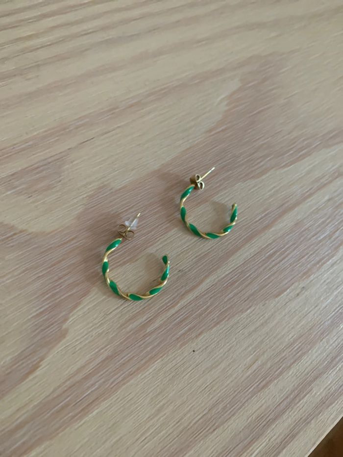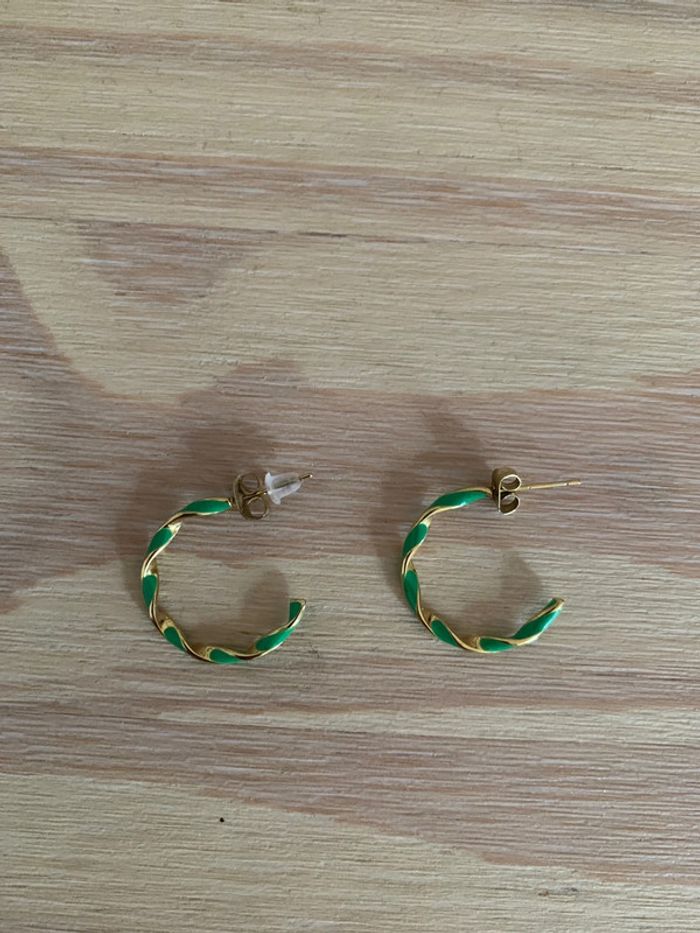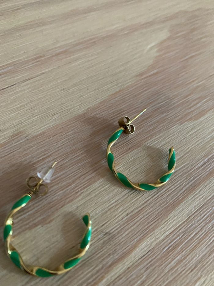 Créoles vertes et dorées acier inoxydables - photo numéro 2