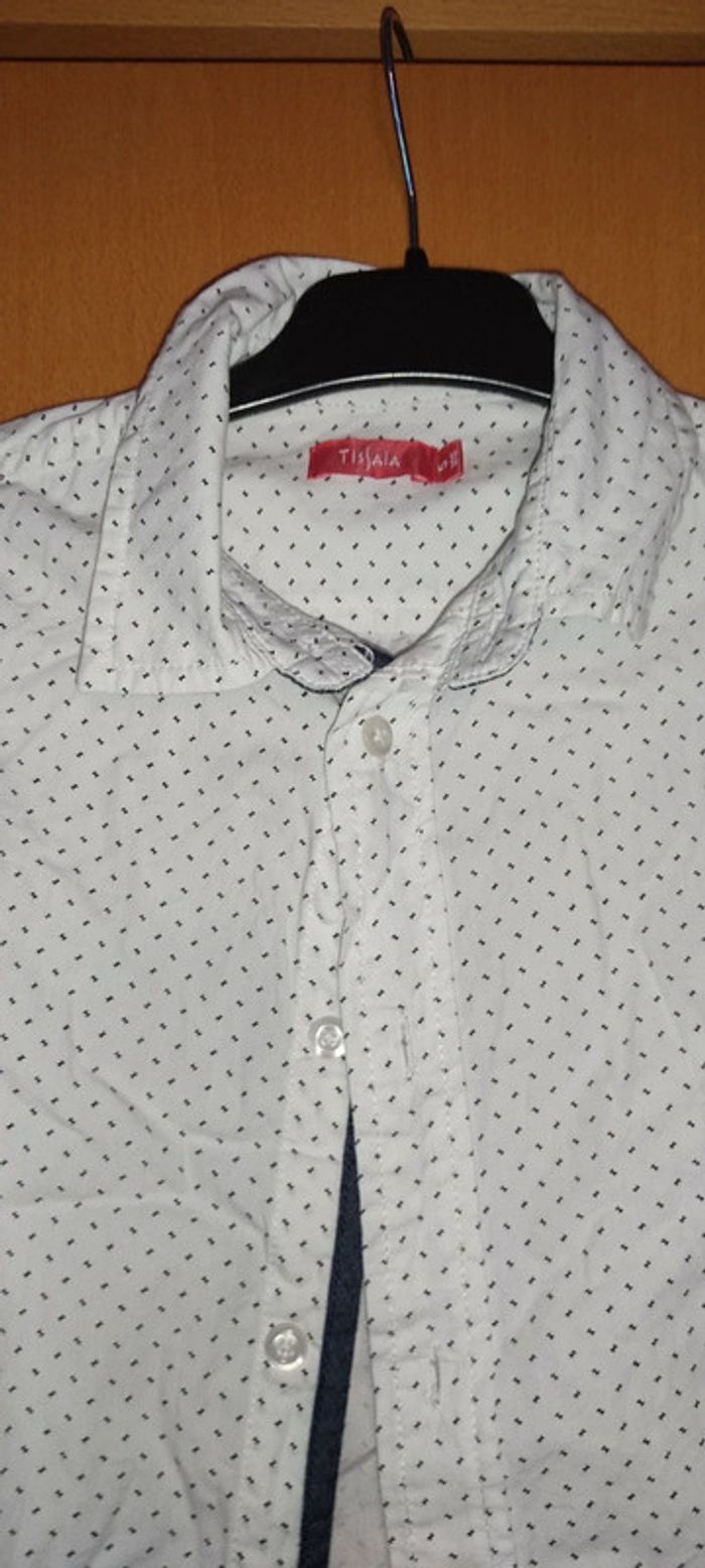 Chemise blanc cassé motif petit noeud papillon comme neuve - photo numéro 1