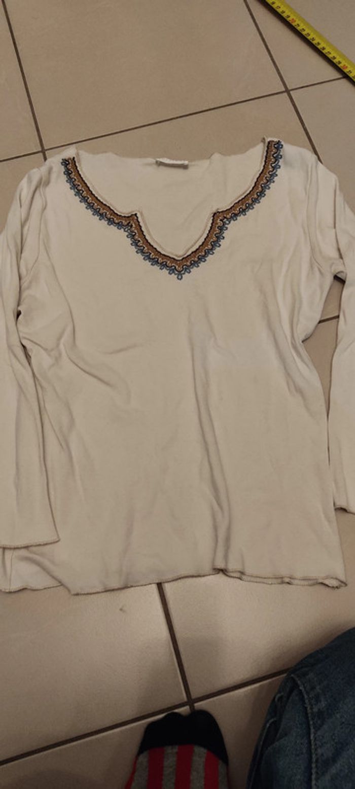 Vends top promod brodé écru taille 1 Manche 3/4 Taille 36.38