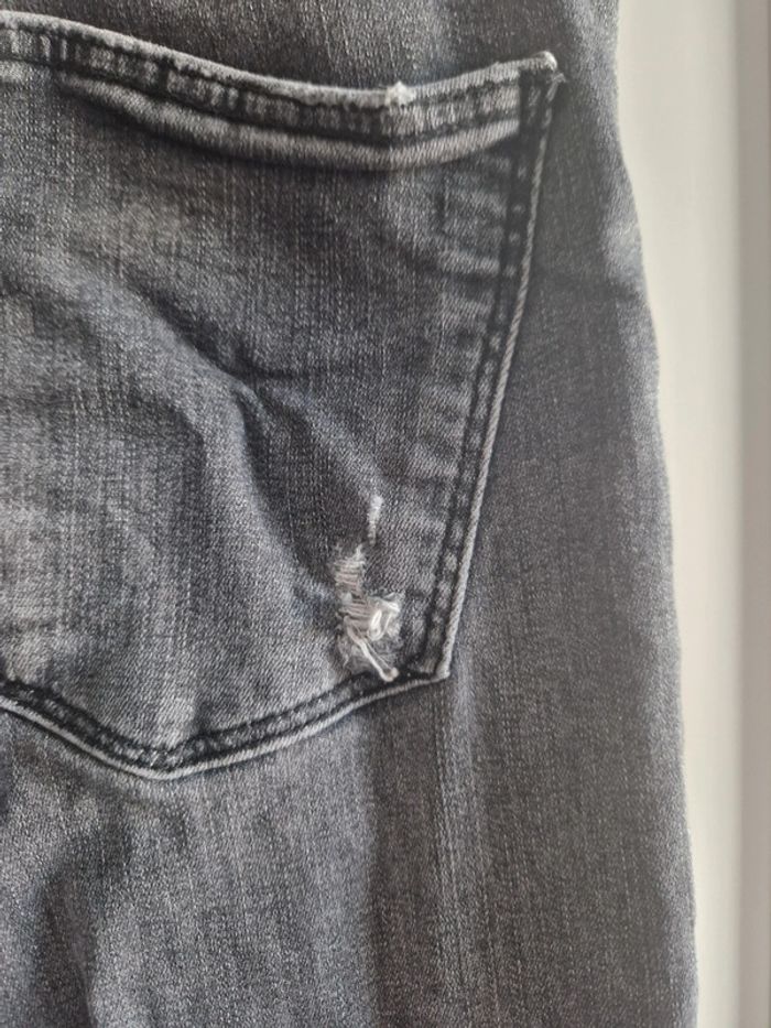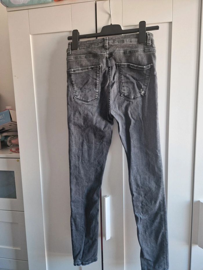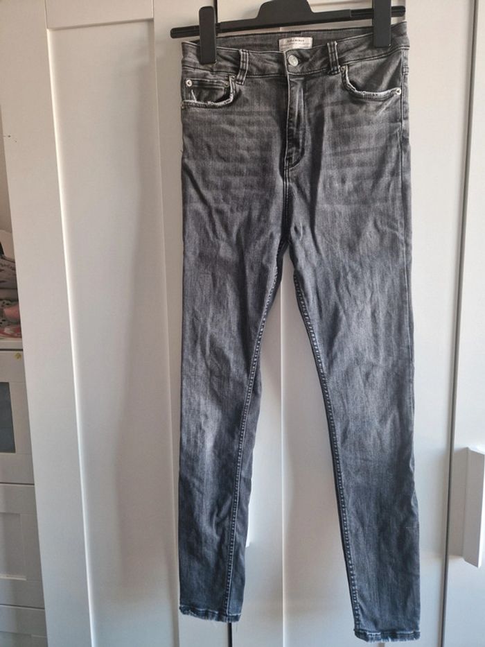 Jeans stretch Zara, taille 38. Bien coupé En très bon état (effets usés par endroit qui correspond au style du jeans et non à l'usure du fait d'avoir été porté) Bouton argenté + fermeture éclair Poches avant et arrière Couleur gris foncé ou noir délavé Envoi rapide Réduction sur les lots