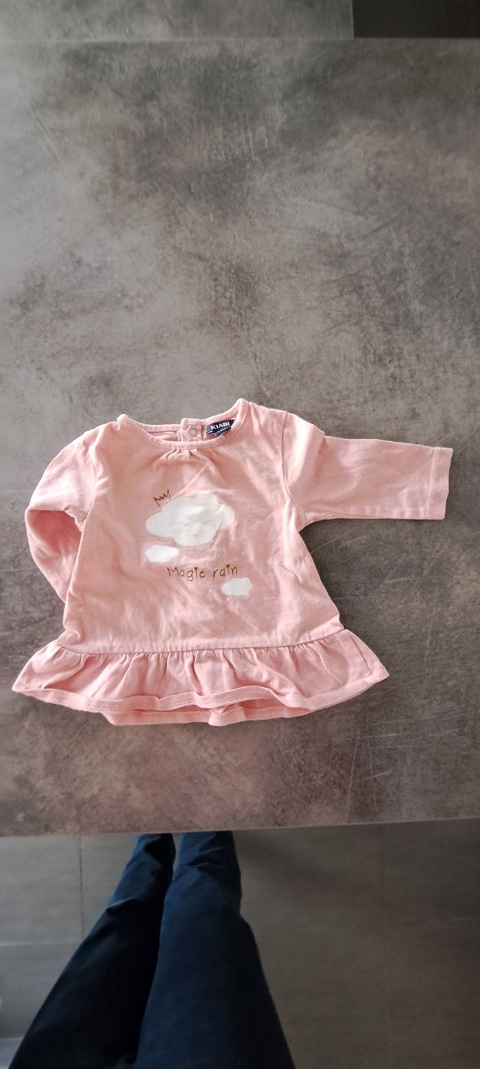 Lots de 3 tsh manches longues bébé Taille 1 mois Marque : obaibi,kiabi et sans marque le 3eme Couleur : rose,blanc et crème