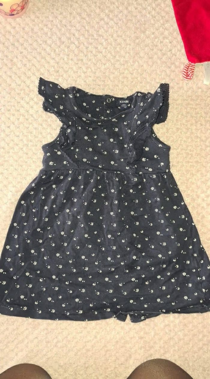 Robe bleue marine avec des fleurs blanches, très peu portée, en très bon état, taille 18 mois, Kiabi ✅ Envois rapides 🤑 Petits prix sur tout le dressing
