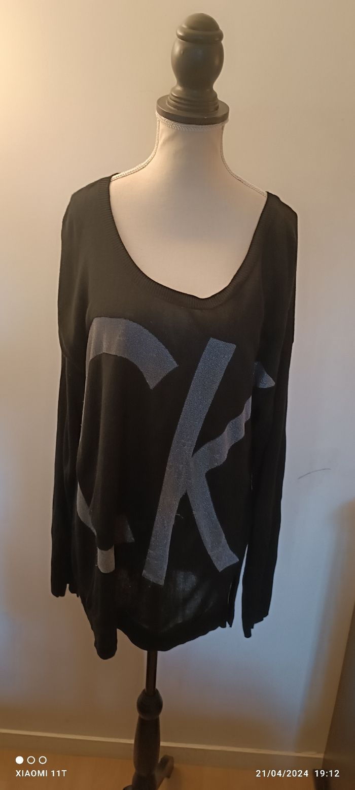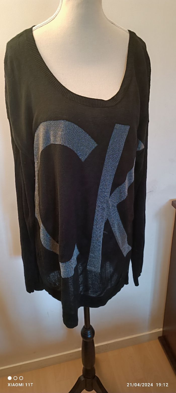 Pull sweat femme taille L Calvin Klein Coloris noir et argenté Longueur 72 cm En bon état Quelques fils qui s'effiloche