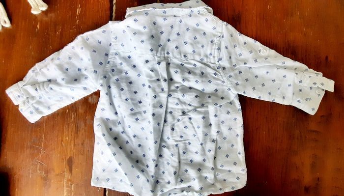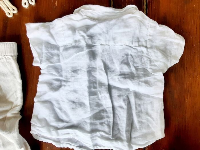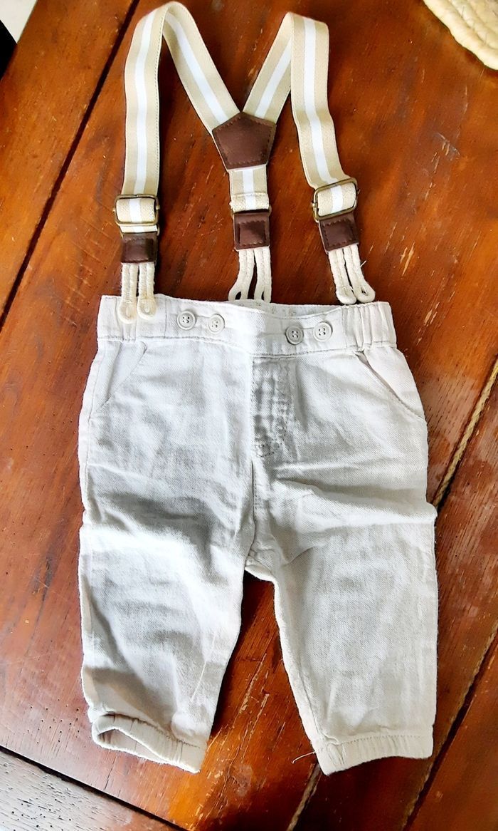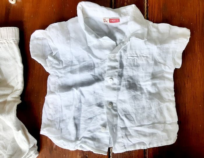 En parfait état 2 chemises, 1 pantalon en lin, des bretelles Dpam 6 mois