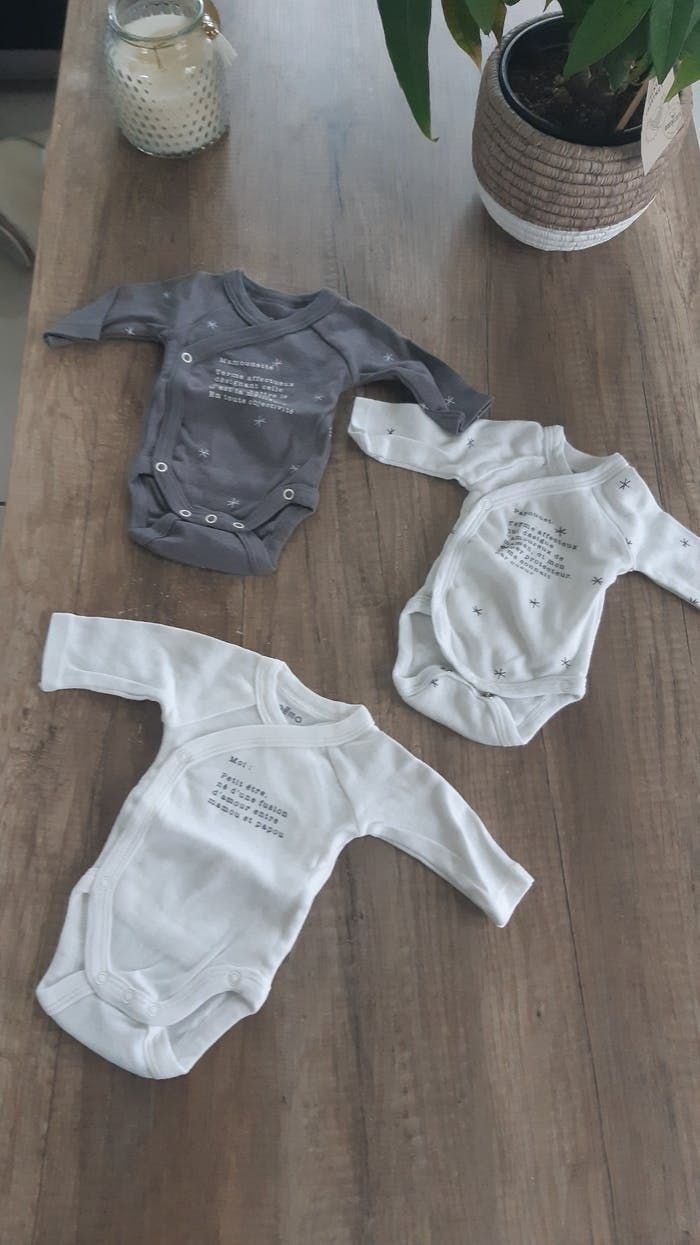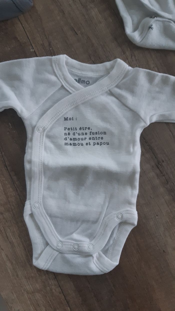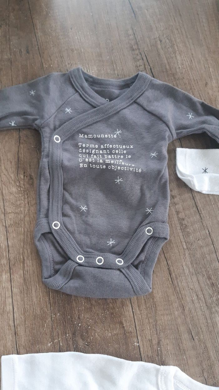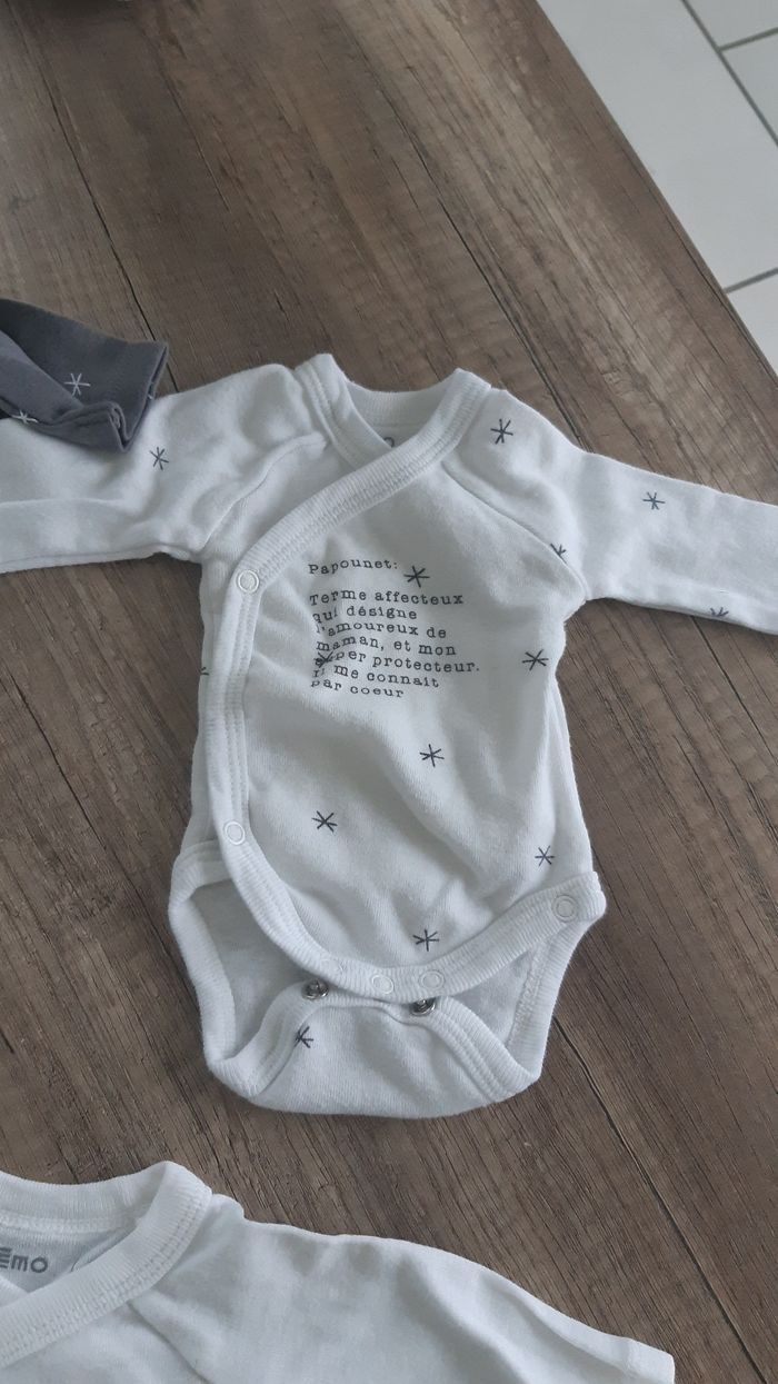Mignon petit bodies de chez Gemo . Taille naissance . Ils sont neufs. Ont juste été lavés.