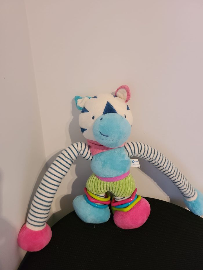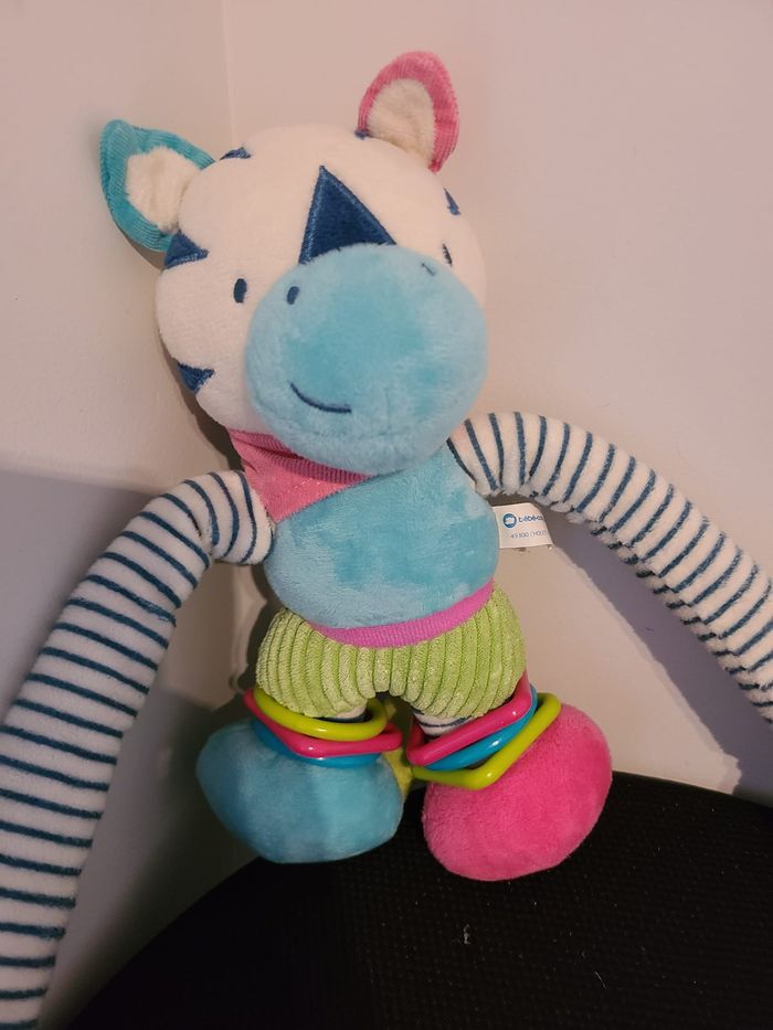 Peluche d'éveil zèbre BÉBÉ CONFORT doudou d'activités bleu grelot 35 cm 128