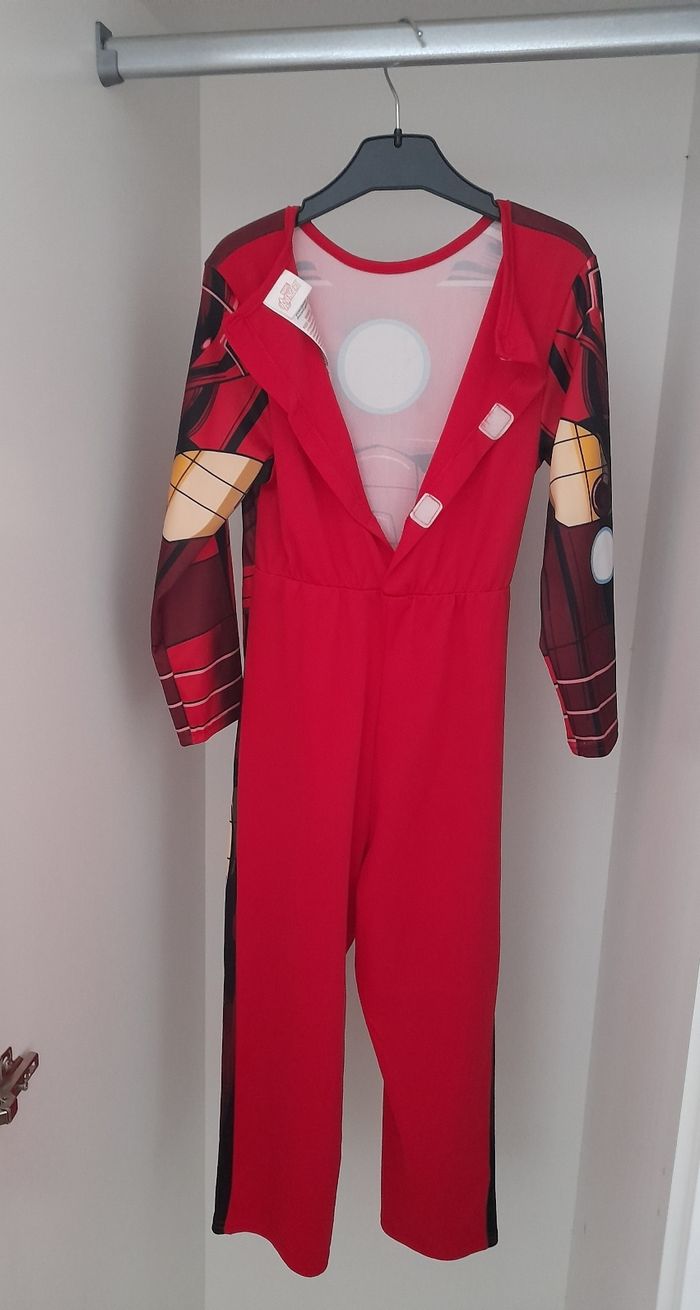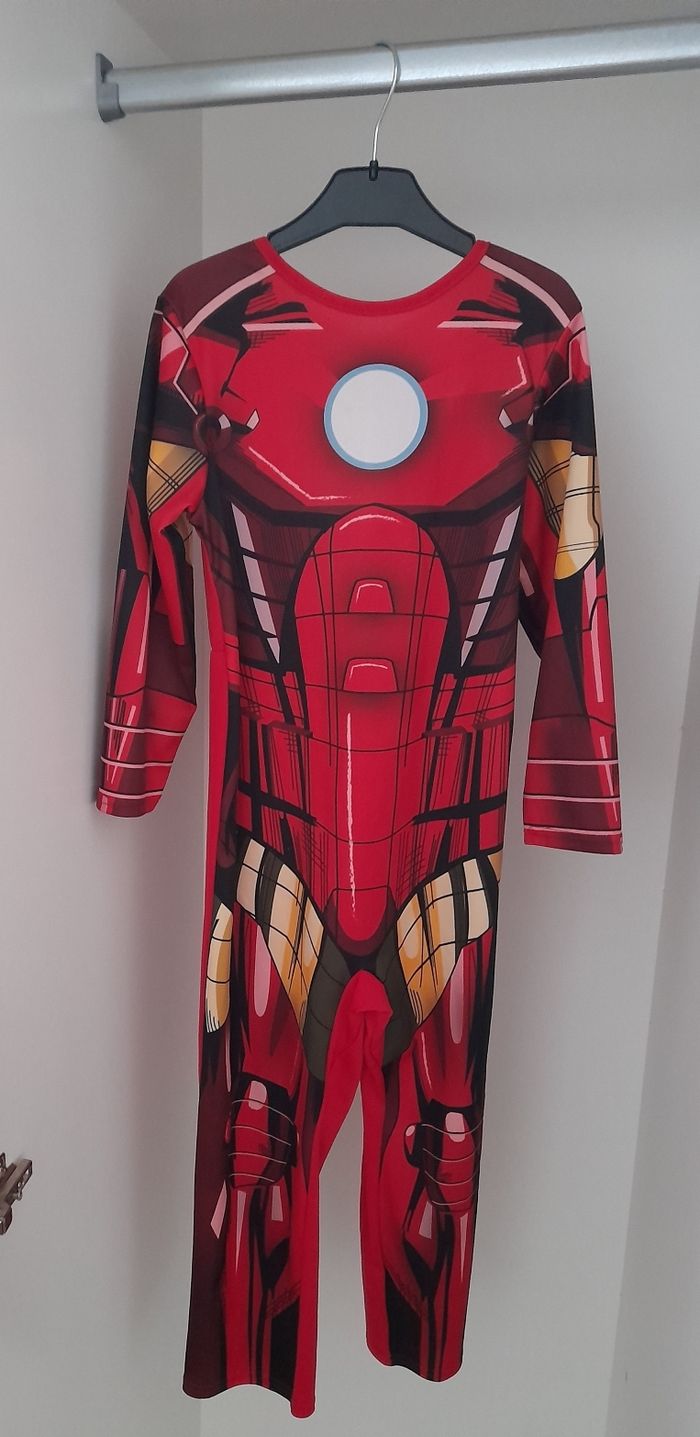 👕 Déguisement Iron Man garçon 👨‍🦰 🏷 Taille 5/6 ans 🎨 Couleur rouge et or 🥁 Bon état 🪧 Combinaison à manches longues, imprimé effet "armure"