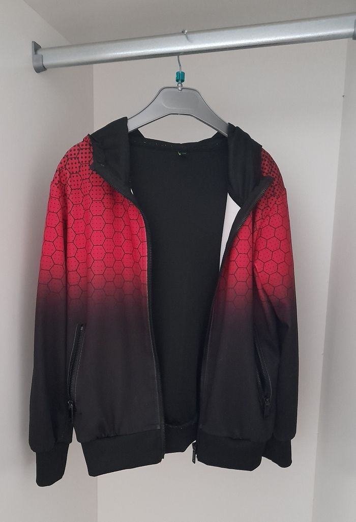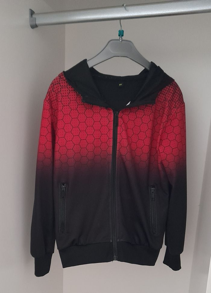 👕 Veste sport garçon 👦 🏷 Taille 8 ans 🎨 Couleur noir et rouge 🥁 Bon état 🪧 Fluide et léger, manches longues