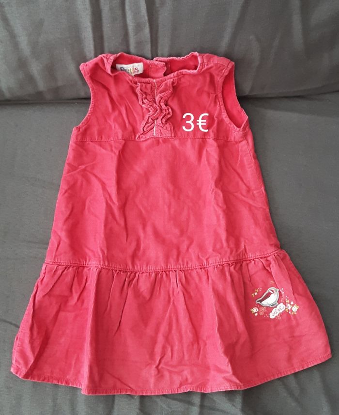 Une Robe Disney de 2ans on bon état, 1 Robe 3 pommes 18 mois, 3 Robes orchestra de 2ans ,une Robes étoile verbaudet de 2ans ,une Robes rouge de 24 mois, Robes rose 23 mois, une Robes les petits doudou de 9 mois.