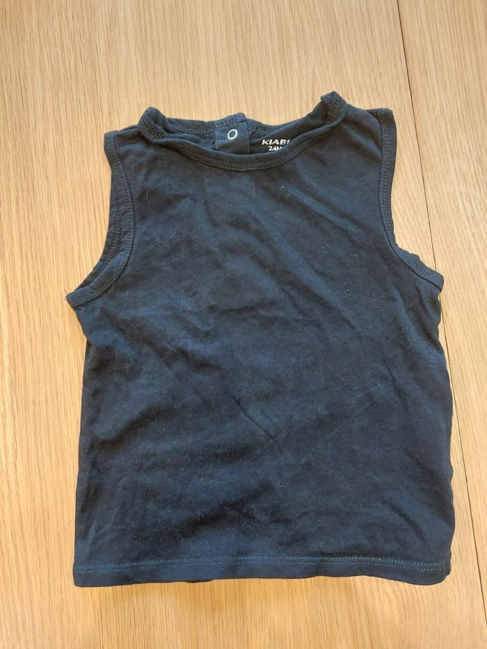 1 turquoise avec un dinosaure en pixel art, 1 Marcel noir kiabi et 1 petit bateau bleu marine (micro tâche à enlever au détachant voir zoom)