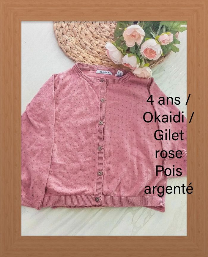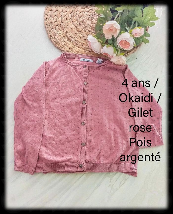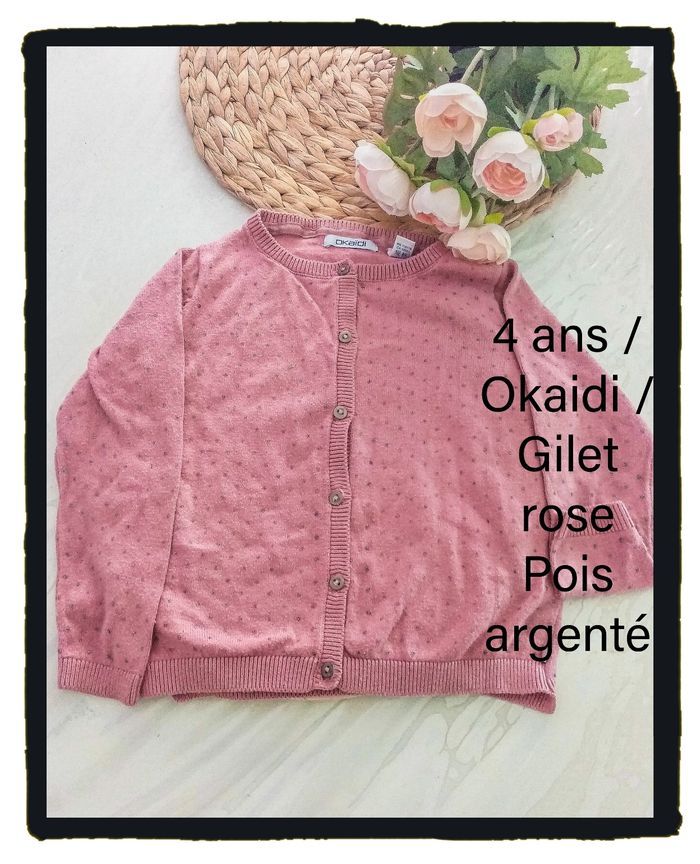 4 ans okaidi gilet rose a pois argenté print été /excellent état - photo numéro 8