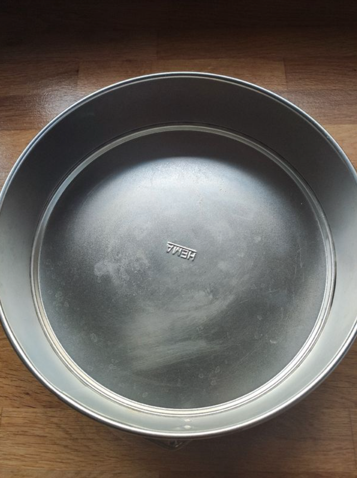 Moule en métal de 25 cm de diamètre. Une charnière permet de l'ouvrir et le fond est amovible. Idéal pour les gâteaux délicats à démouler Bon état. Acheté chez Hema