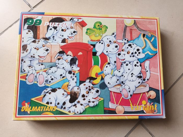 Puzzle 99 pièces dalmatiens 32 x 23 cm Complet Boite un peu abimée sur les coins (voir photos)