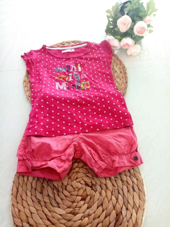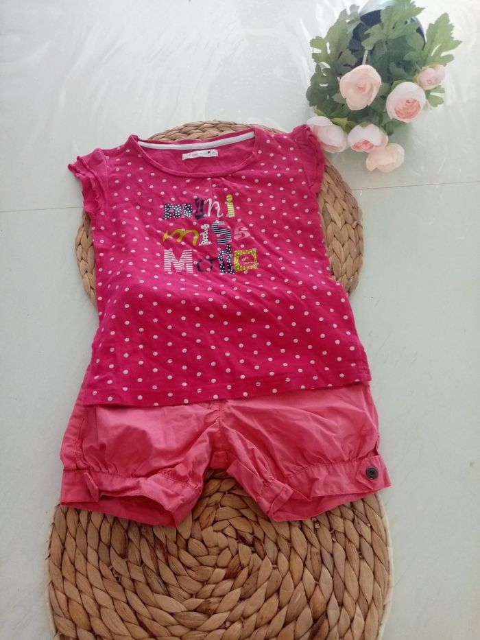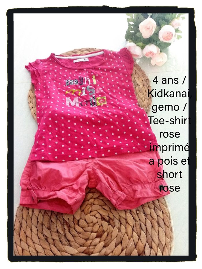 État 10/10 Envoie rapide 👍 *4ans Tee-shirt imprimé a pois rose gemo. *4 ans short rose kidkanai