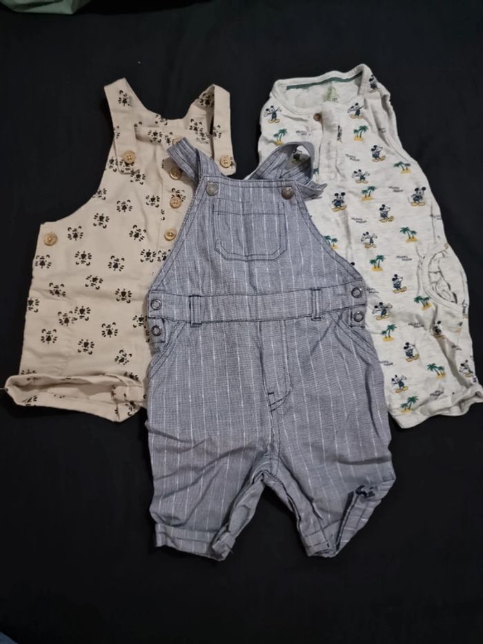 3 salopettes shorts 12 mois neuves kiabi, orchestra et Verbaudet
