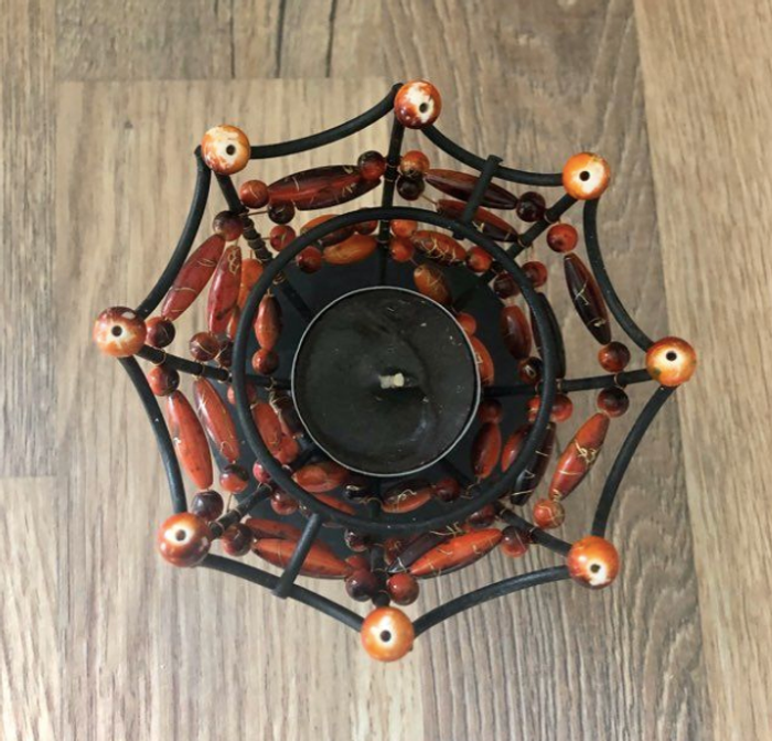 Bougeoir acheté dans une boutique indépendante en bon état perles du dessus un peu délavées (voir photo 2) en métal noir avec perles de couleur oranges 10 cm de diamètre et de hauteur vendu sans la bougie