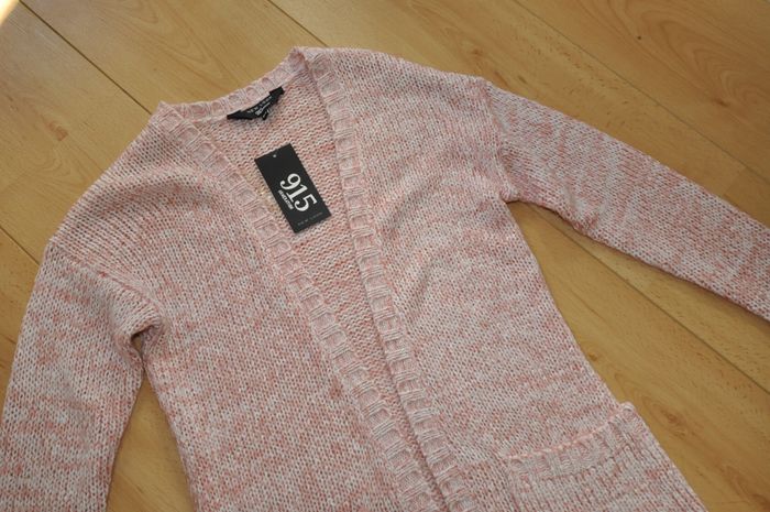 Joli cardigan en maille chinée rose et crème, sans fermeture. Taille 140-146cm ou 10-11 ans Longueur 68cm, largeur sous aisselles 42cm