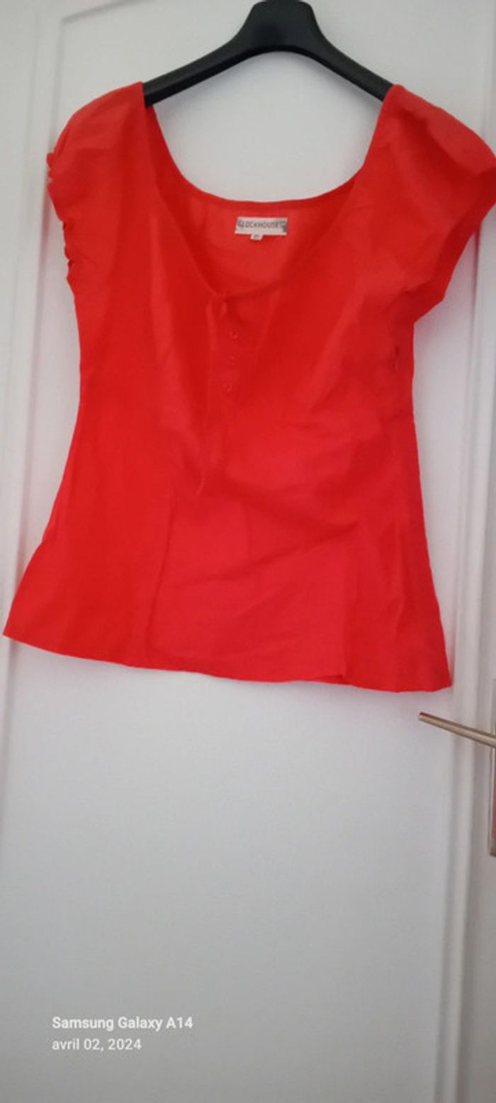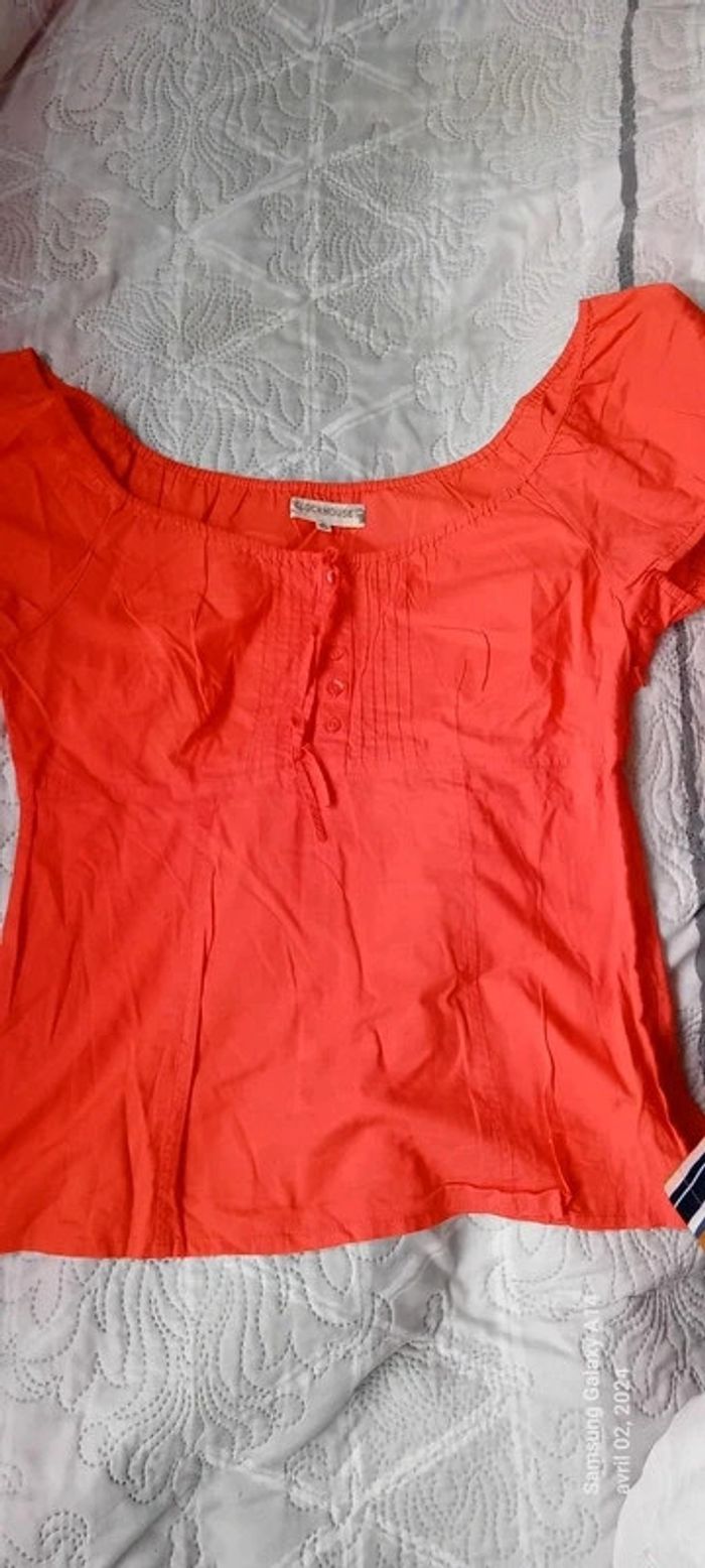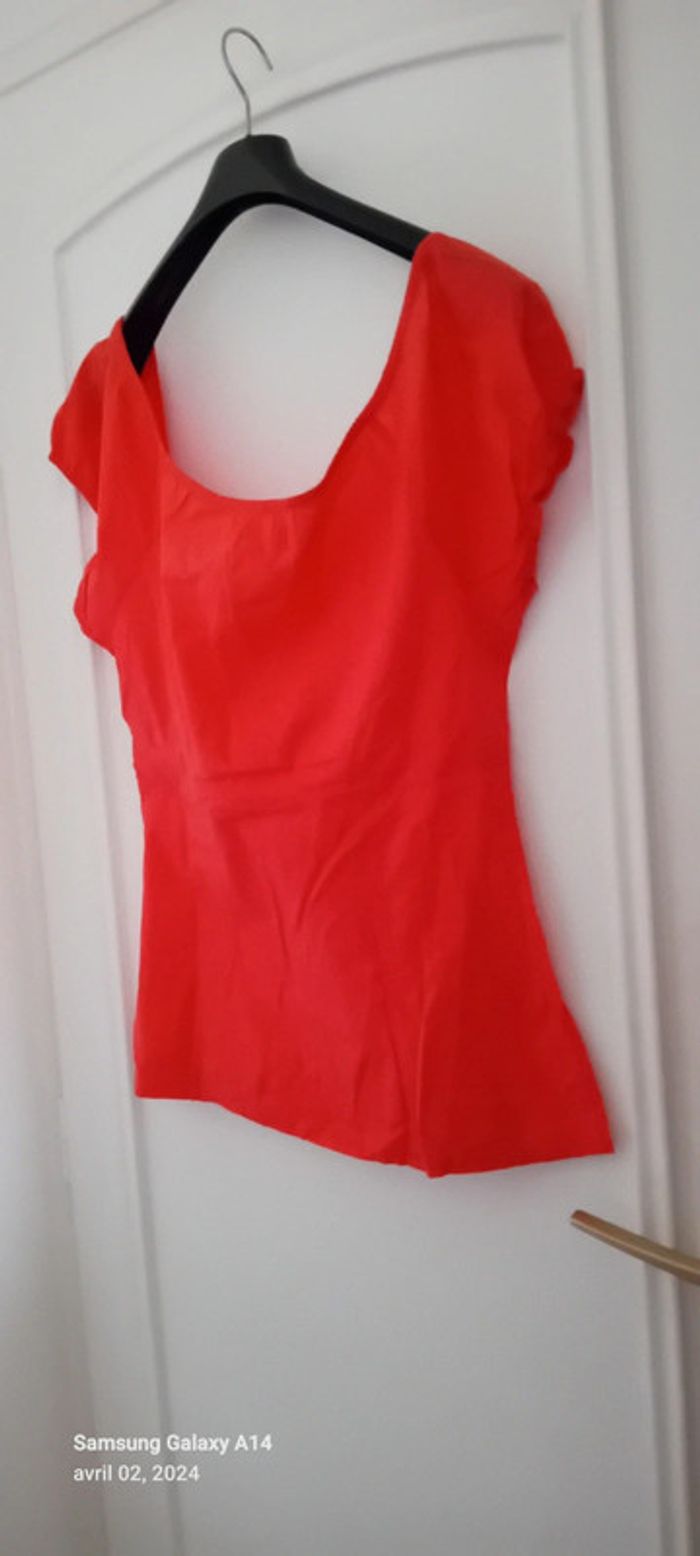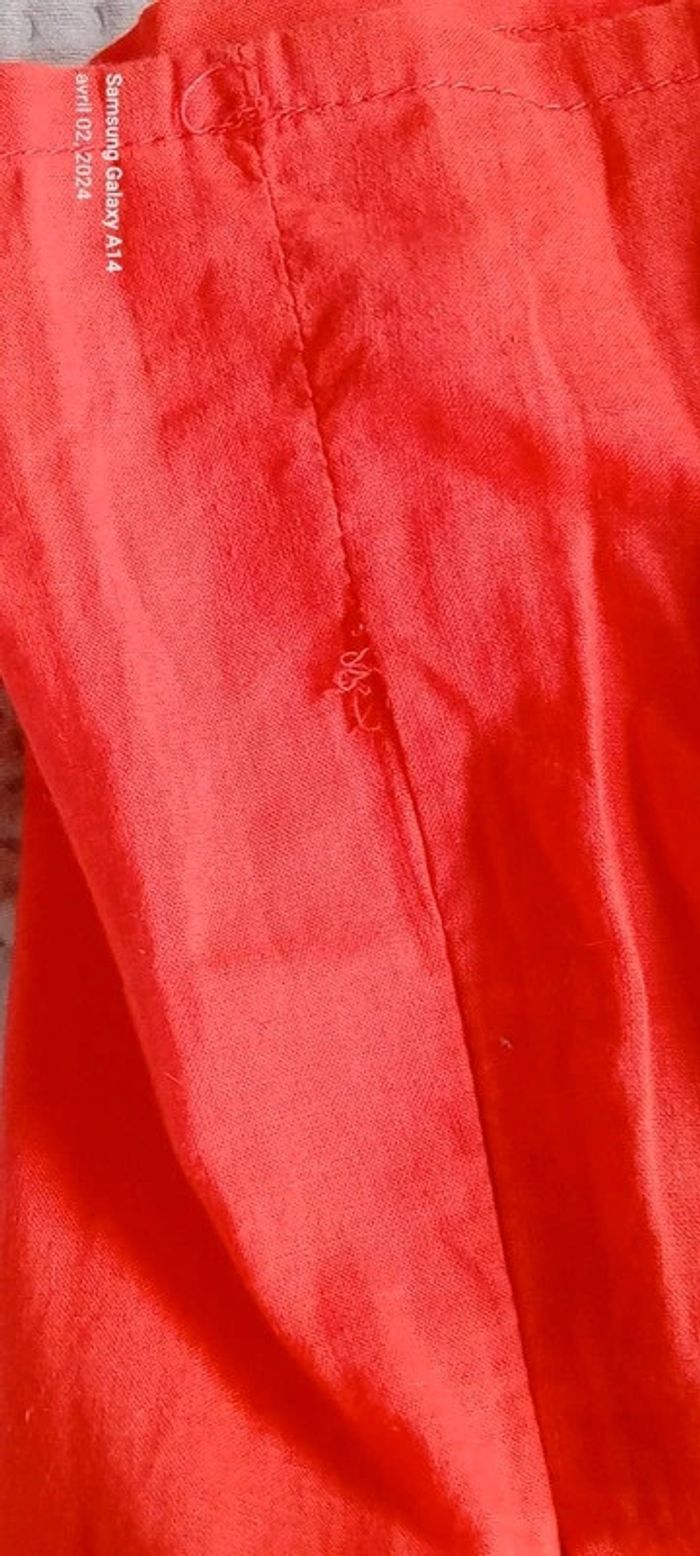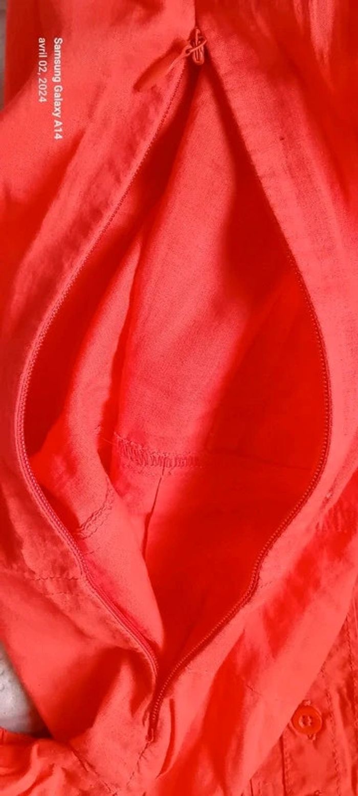 Blouse manches courtes style caraco en coton léger élastique aux manches et au col avec lien de resserage et boutons taille haute cintrée fermeture éclair sur le côté couleur corail tirant sur le rose(se fier à la première photo pour la bonne couleur) longueur 64cm largeur aisselles à aisselles 45 cm largeur épaules 38 cm peu porté en très bon état ⚠️ juste quelques fils tirés et decousus au niveau de la couture sur le côté (voir dernières photos) #midole #midolefemme44 #hautcaraco #clockhouse #femmeXL