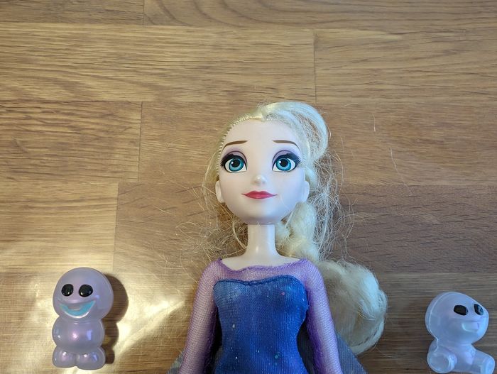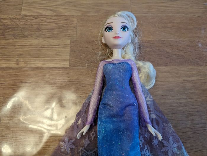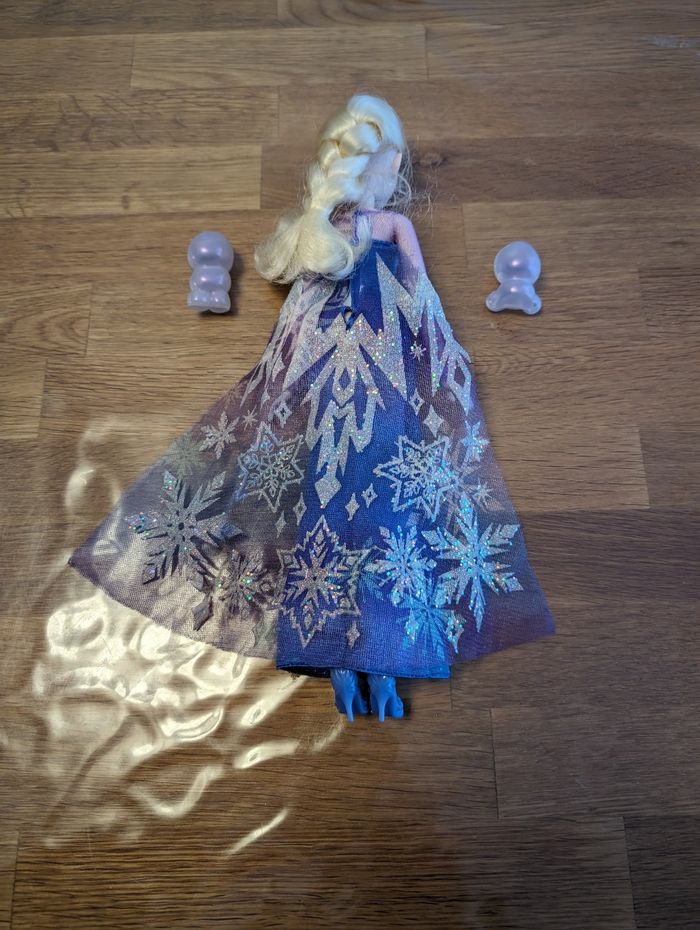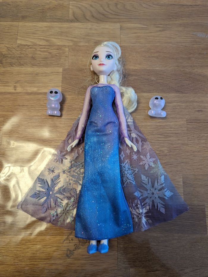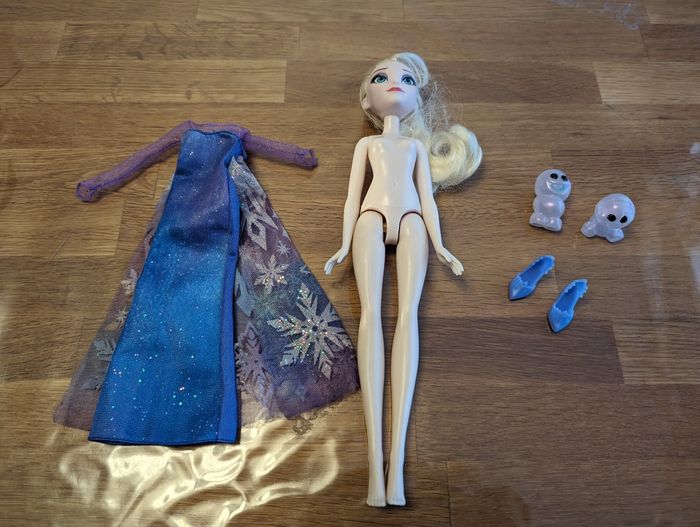 Poupée La reine des neiges Disney 29 cm Très bon état, robe avec cape intégrée, deux petits bonhommes de neige et jolies chaussures, juste les manches ont quelques trous.