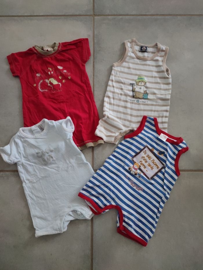 Lot de 4combishorts 6mois Marque orchestra, canari baby, arclo et inconnu N'hésitez pas à aller voir sur mon dressing, il y a d'autres articles de cette taille. Réductions activé sur lots Envoi rapide