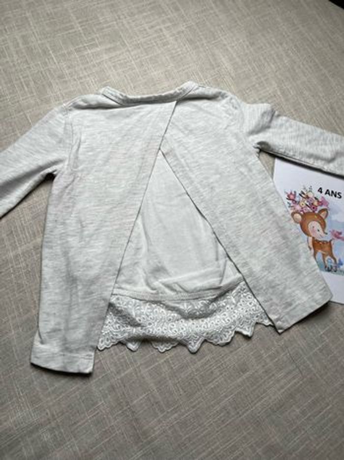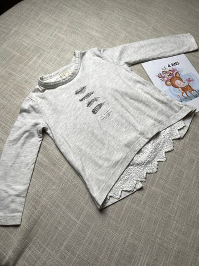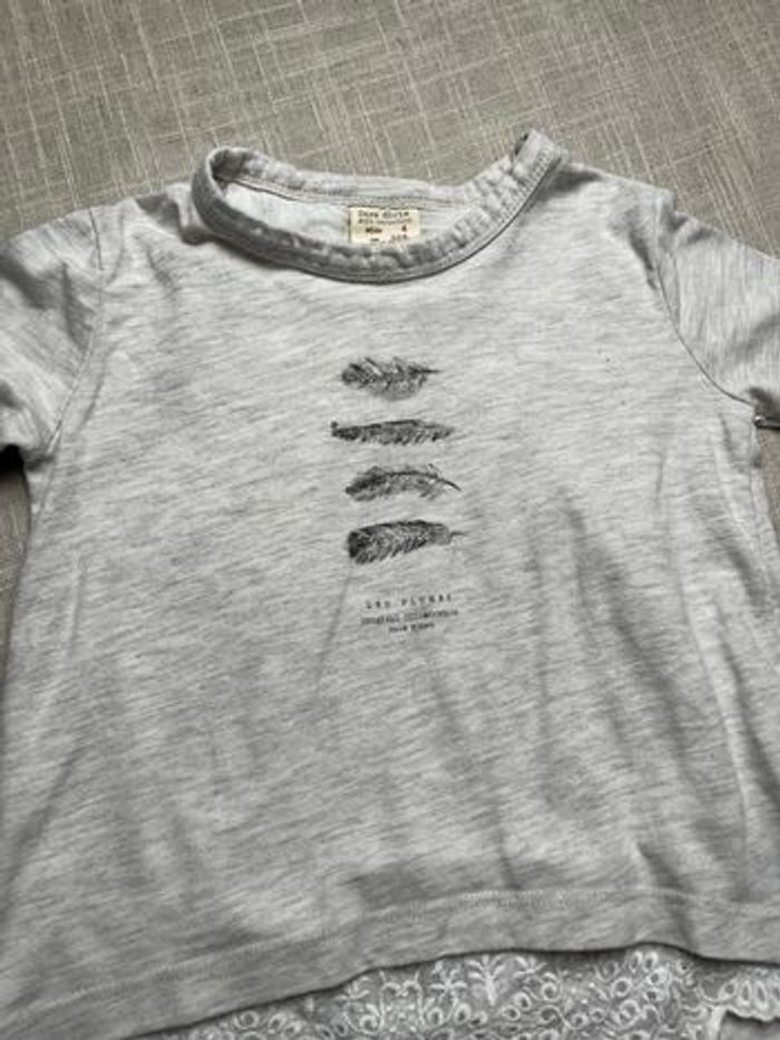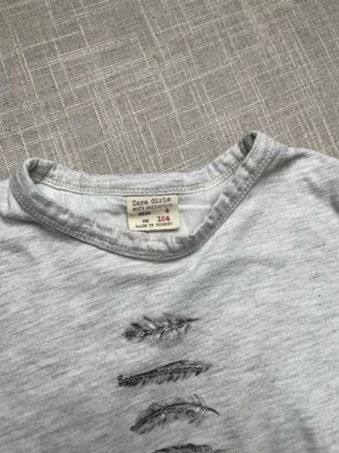 Magnifique t-shirt avec dos ouvert de la marque Zara Motif plumes, doublures avec bas style dentelles et ouverture dans le dos. Taille 4 ans Une minuscule tache (photo) qui partira sûrement avec du détachant. Groupez vos achats pour profiter des remises activées sur les lots et réduire vos frais de port #chrisbc17fille4ans