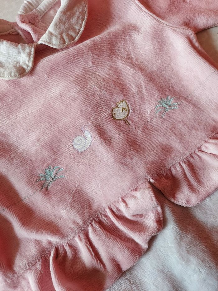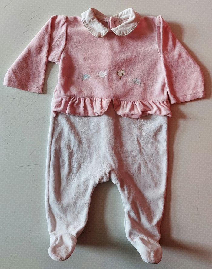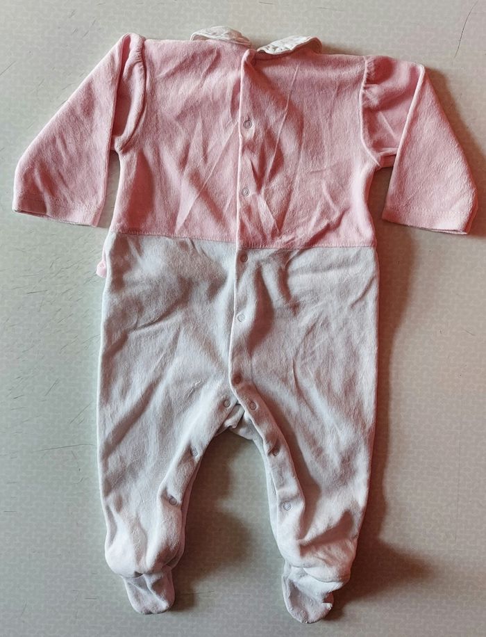 Je vends un pyjama pour petites filles de couleur rose et blanc, avec détails sur le devant. Plusieurs boutons à pressions dans le dos pour facilité le change et l'habillage. Taille 6 mois de la marque In Extenso. En très bon état.