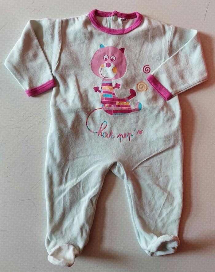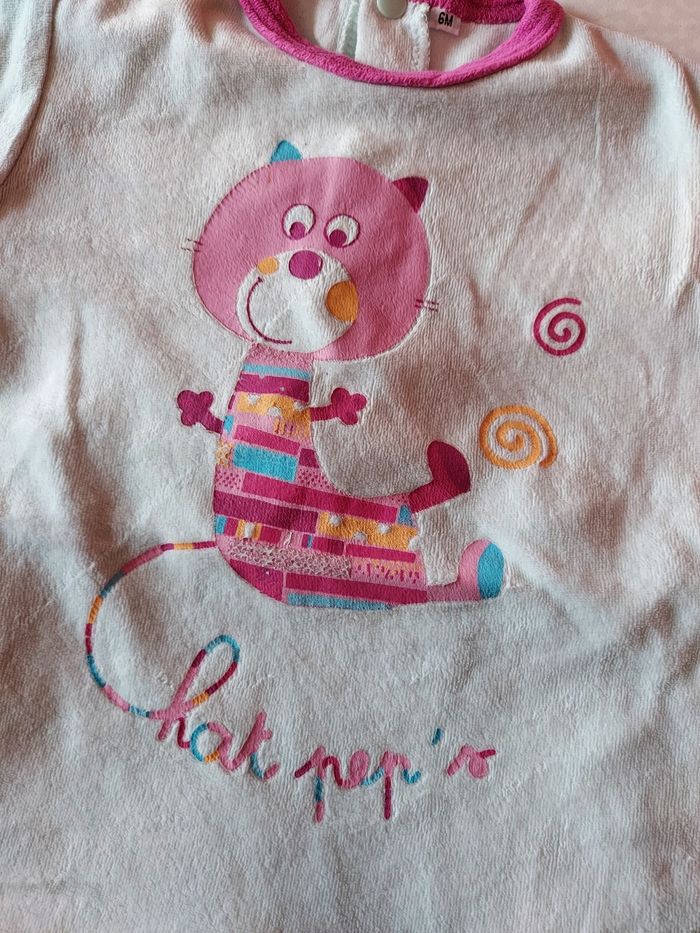 Je vends un pyjama de couleur vert eau avec motif sur le devant. Taille 6 mois, en très bon état.
