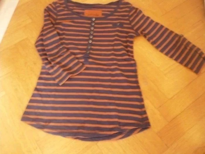 Top manches 3/4 rayé bleu et camel coton Pimkie XS Tous les articles en 34 : #neidj200134