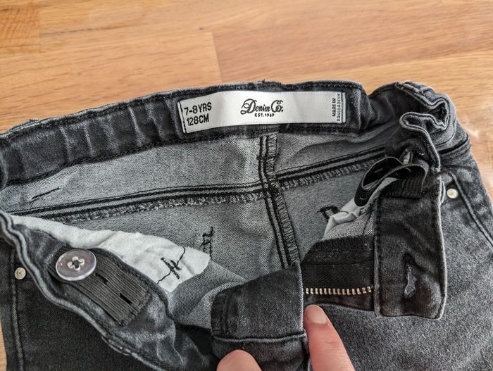 Pantalon fille 8 ans Primark Noir un peu passé, bon état général mais beaucoup porté, ceinture ajustable.