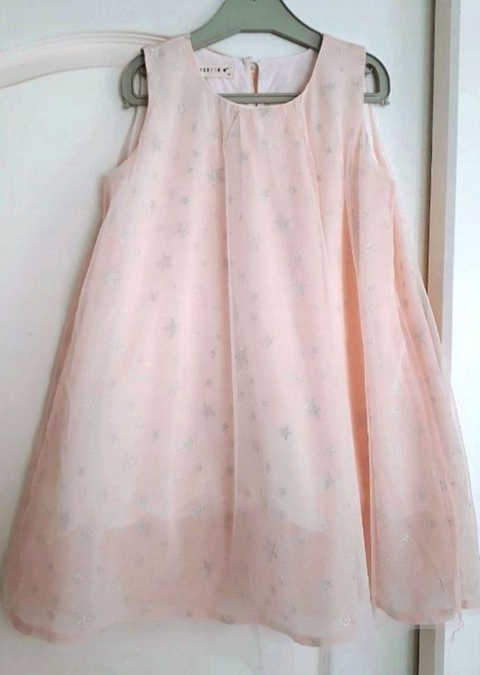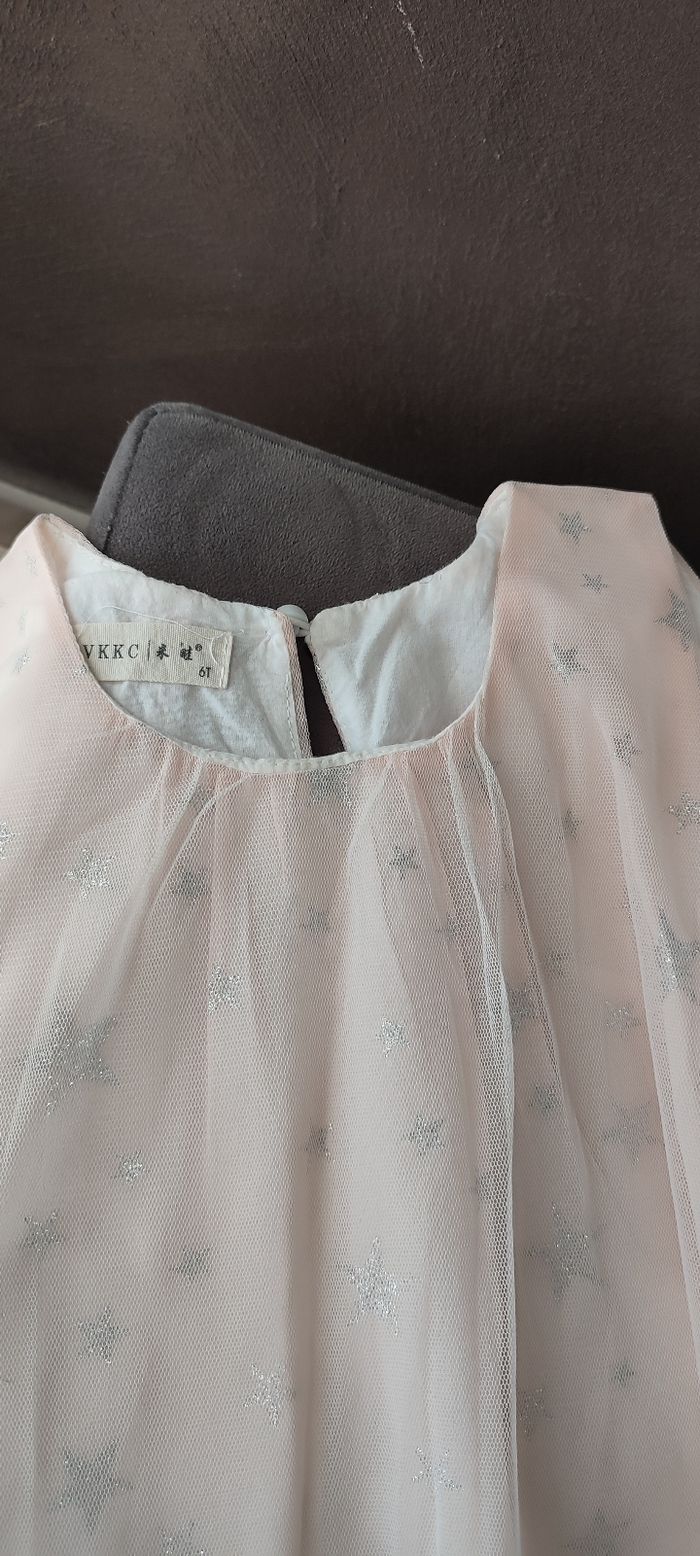 Trois tissus : tulle rose poudré, mousseline à étoiles paillettées et doublure coton blanc plus courte sans trou ni tâche Maison non fumeur sans animaux