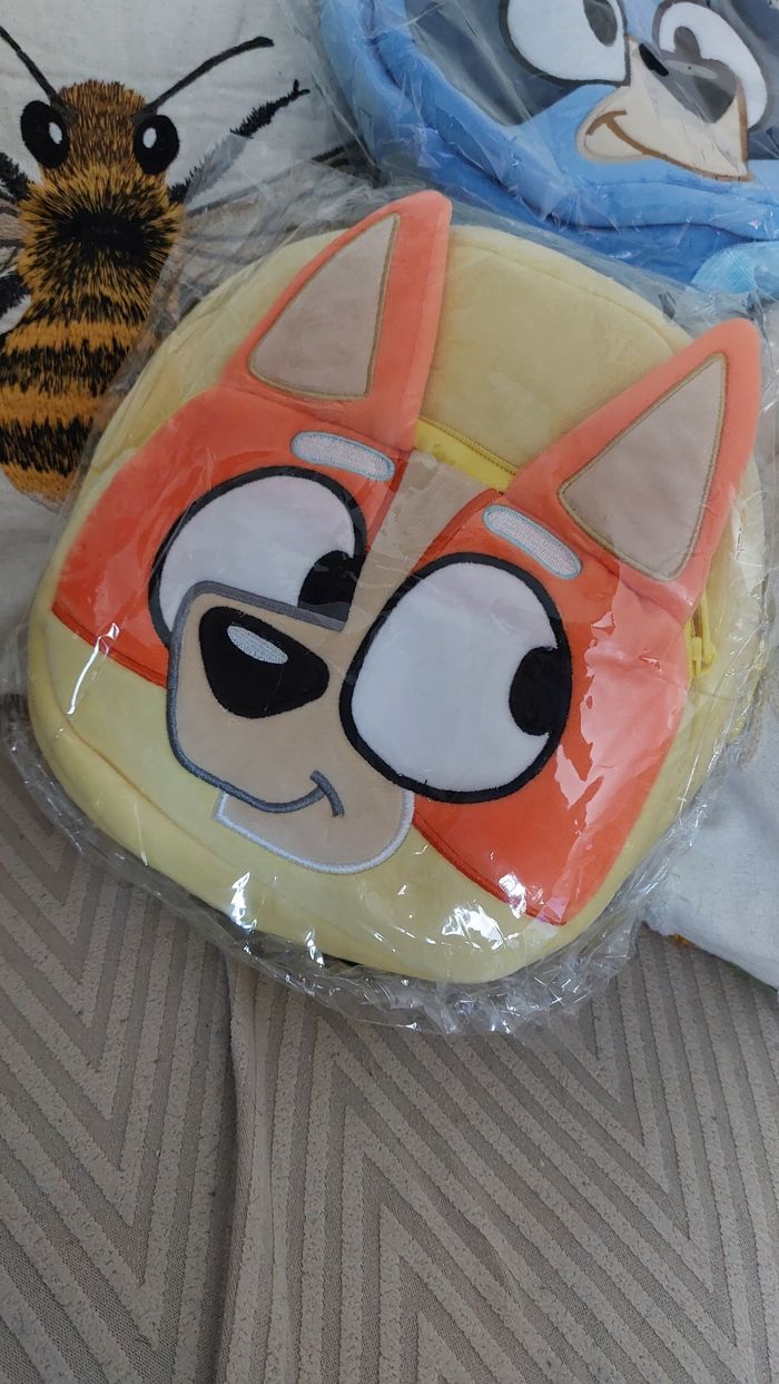 Sac à dos Bingo en matière douce, Deux poches, neuf encore dans l'emballage. Idéal pour rentrée maternelle pour septembre Existe en Bluey dans mon dressing Acheter 30e #bluey #blueyetbingo #sacados #enfant