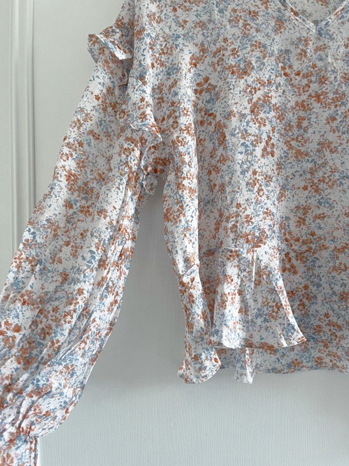 Blouse à volant blanche, orangé et bleu clair - photo numéro 3