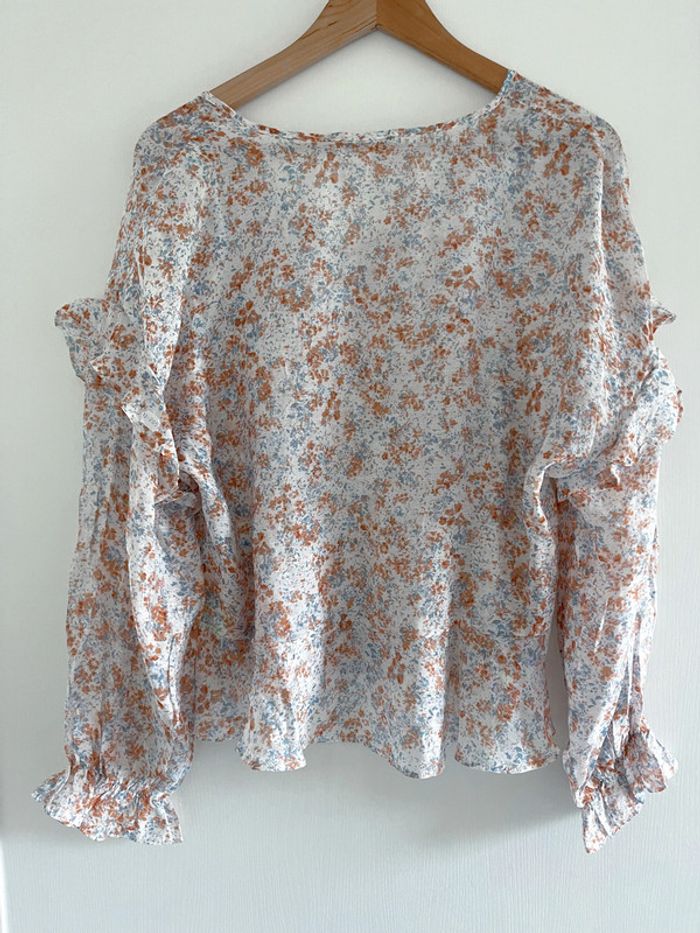 Blouse à volant blanche, orangé et bleu clair - photo numéro 2