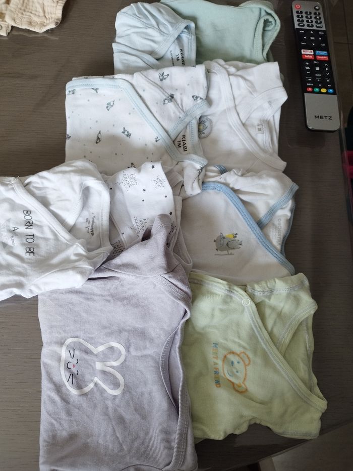 Lot de 9 bodies 1 bretelles larges, 7 ml et 1 mc taille 1 mois