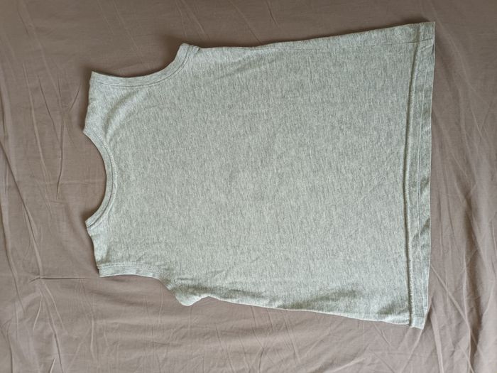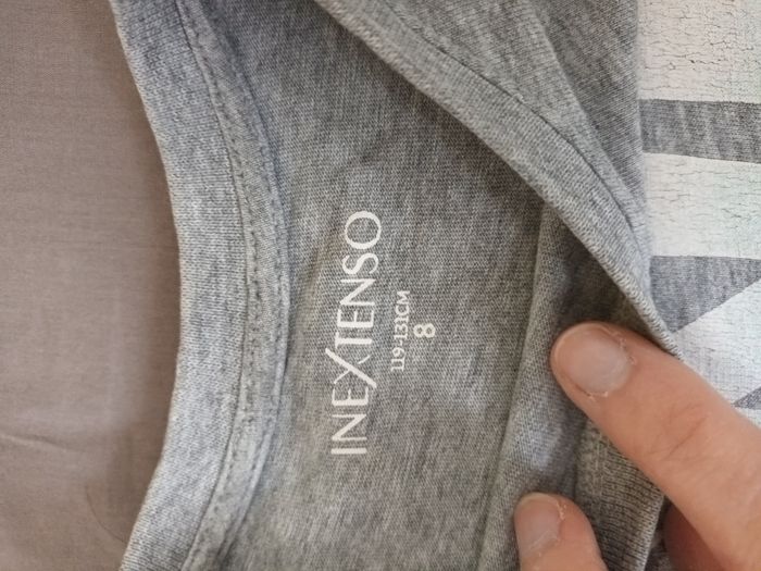 Débardeur gris avec motif da,s les tons bleus sur le devant Marque : In Extenso Taille : 8 ans 90% coton, 10% viscose Motif un peu craquelé (voir photos), pas d'autres défauts