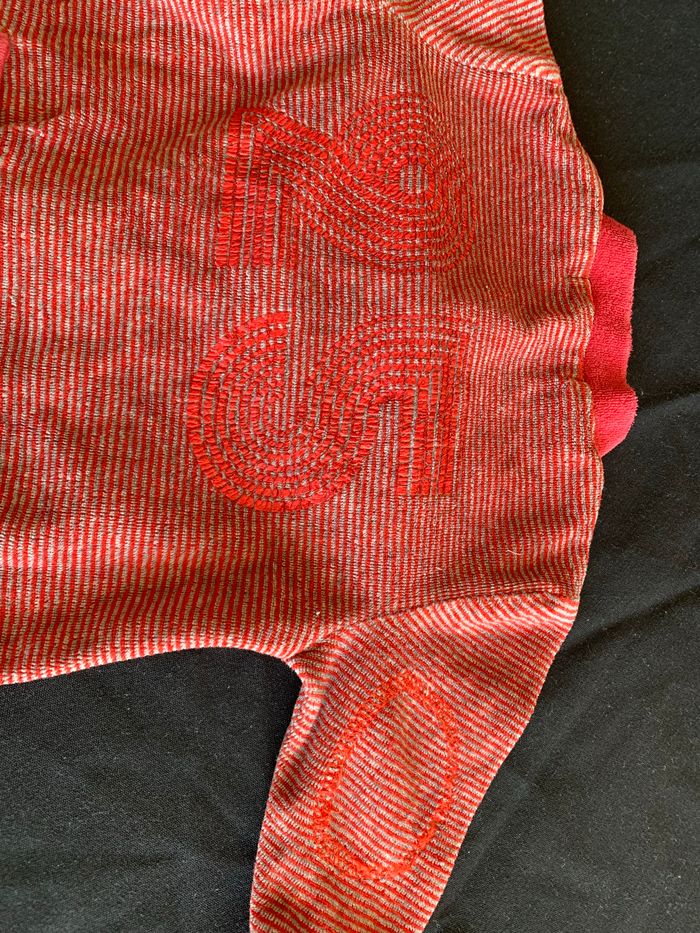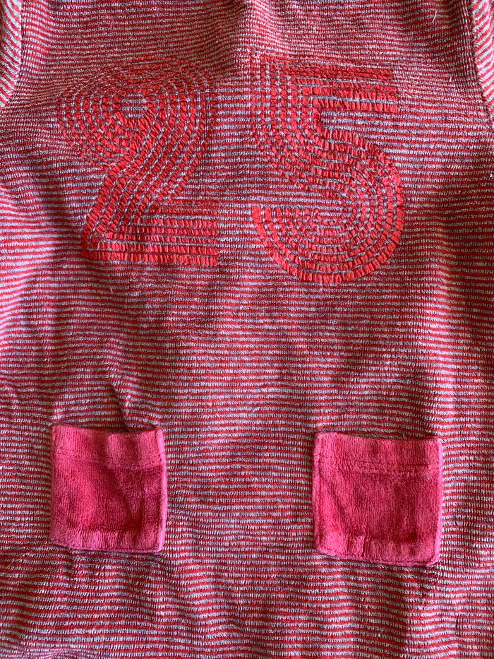 Fermeture éclair devant 2 poches derrière Rayures fines rouge et gris Numéro 25 au dos