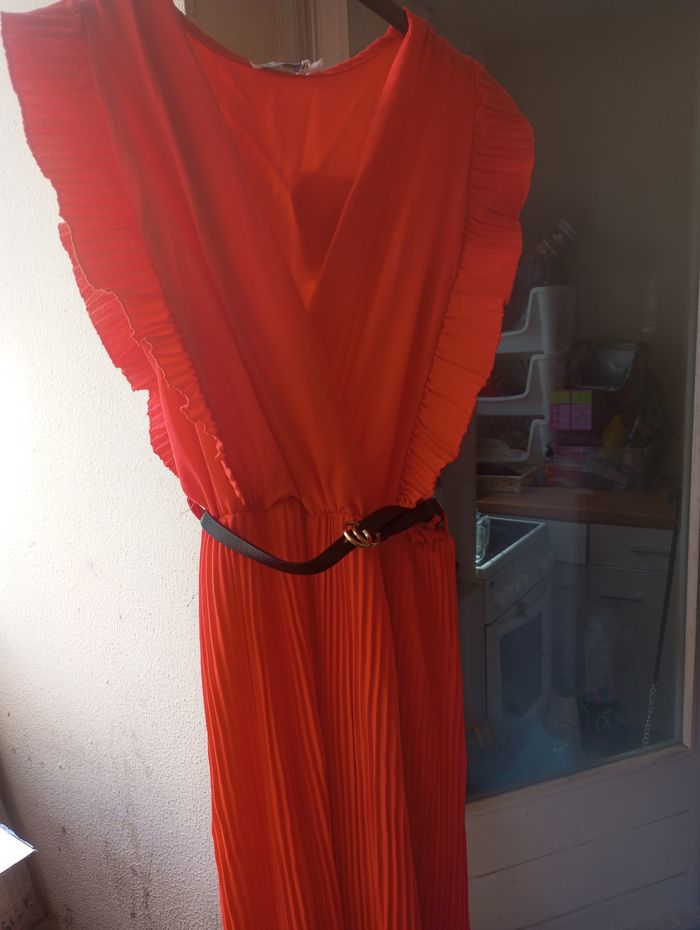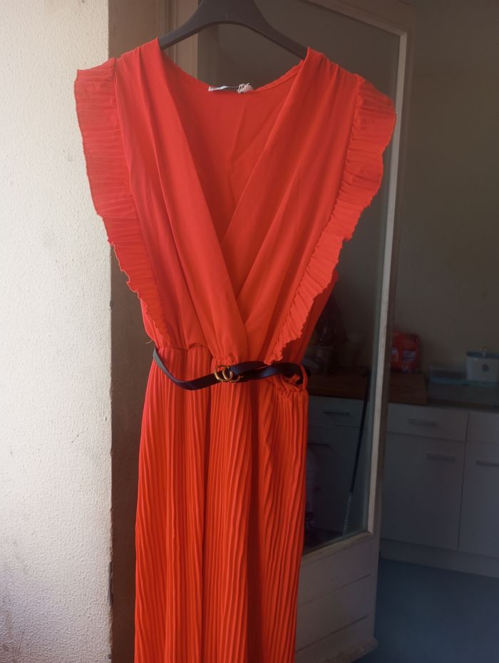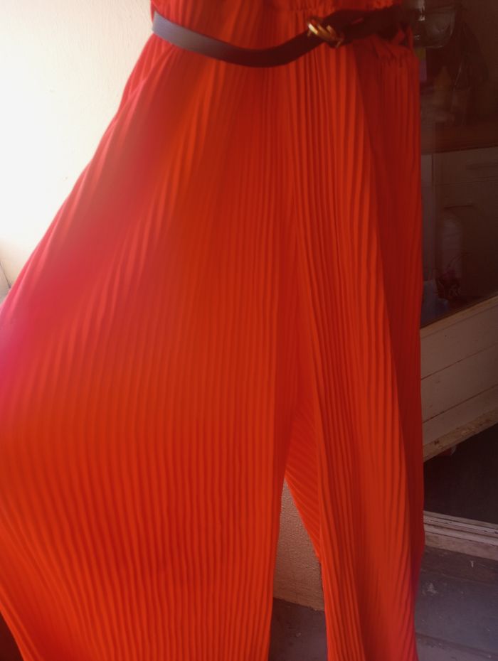 Combi femme couleur orange fluo avec ceinture très agréable a porté taille unique jusqu'à un taille 40 elastiqué a la taille