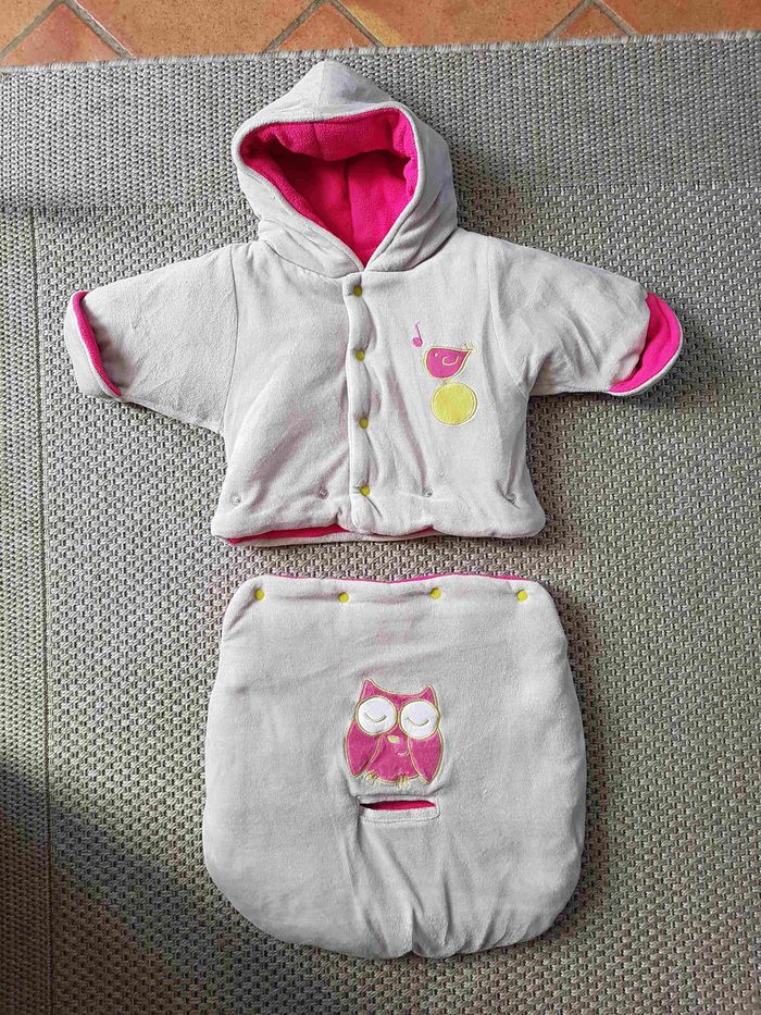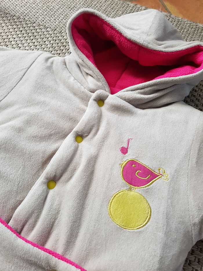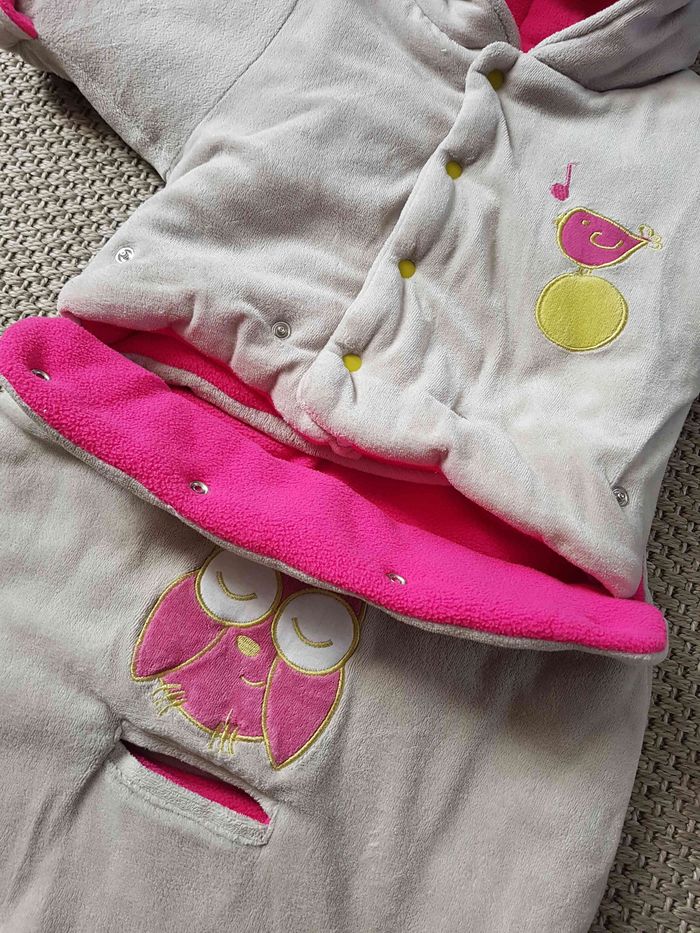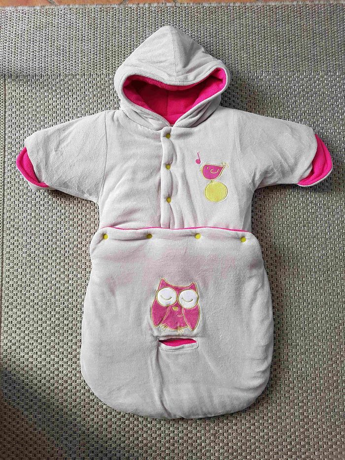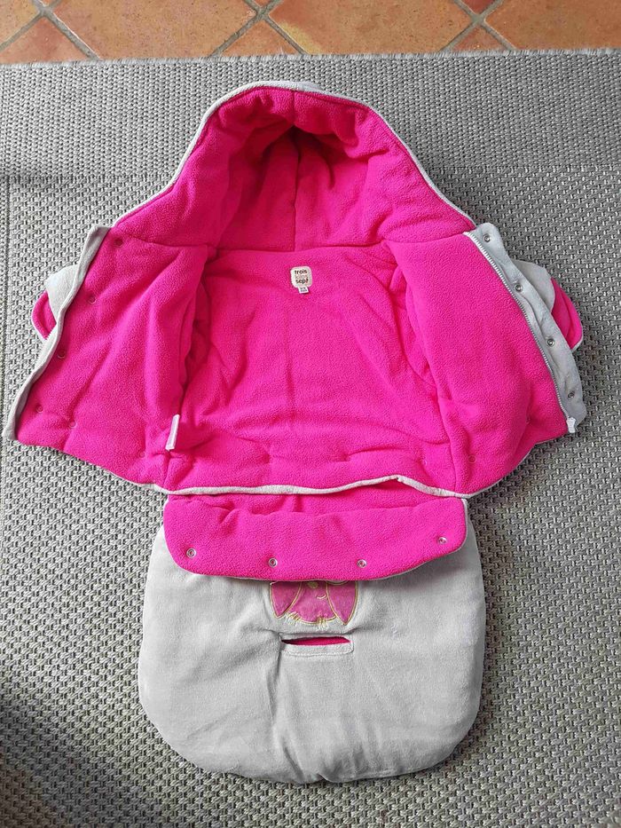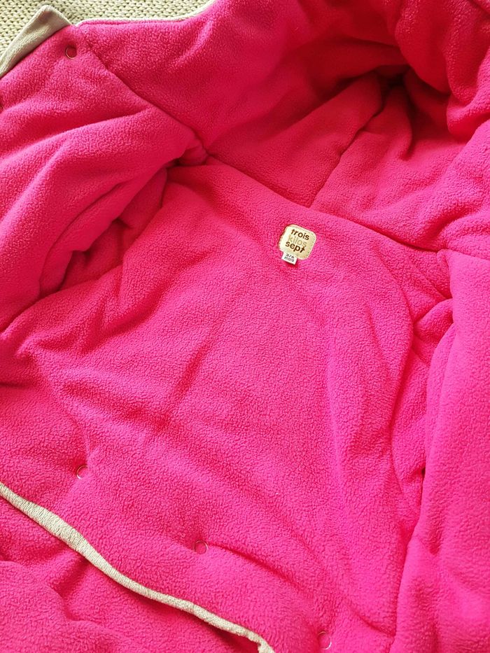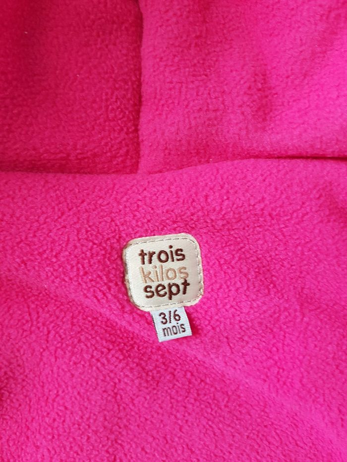 Bonjour. Combinaison pilote en excellent Etat de la marque Trois Kilos Sept. Ne peluche pas. Elle est comme neuve. Très chaude avec sa matière polaire. Elle est également pratique avec le trou entre les jambes pour les ceintures. Elle peut se séparer en deux pour servir de manteau uniquement. Douillette, bébé sera bien au chaud et pourra dormir en sécurité. Fermeture éclair et boutons à pression sur le devant. couleur Grise avec intérieur Rose fuchsia, elle possède des motifs brodés. Voir les photos pour plus de détails. Achetée neuve à 40€ Envoi rapide et soigné.