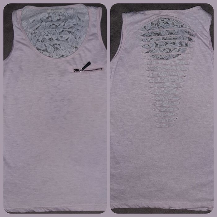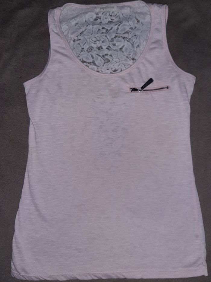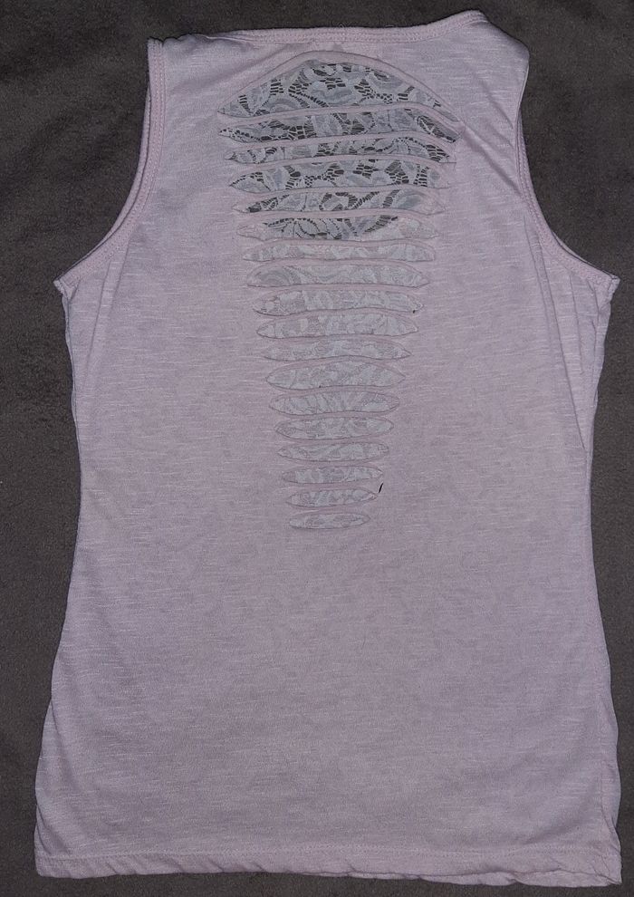 Vends un haut débardeur léger en taille 38 de couleur rose pâle et dentelle dans le dos 3 E