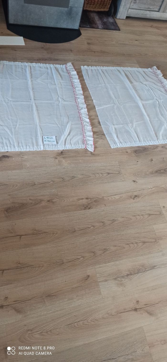 Vends 2 rideaux blancs et rouge l 90 cm h 100 cm